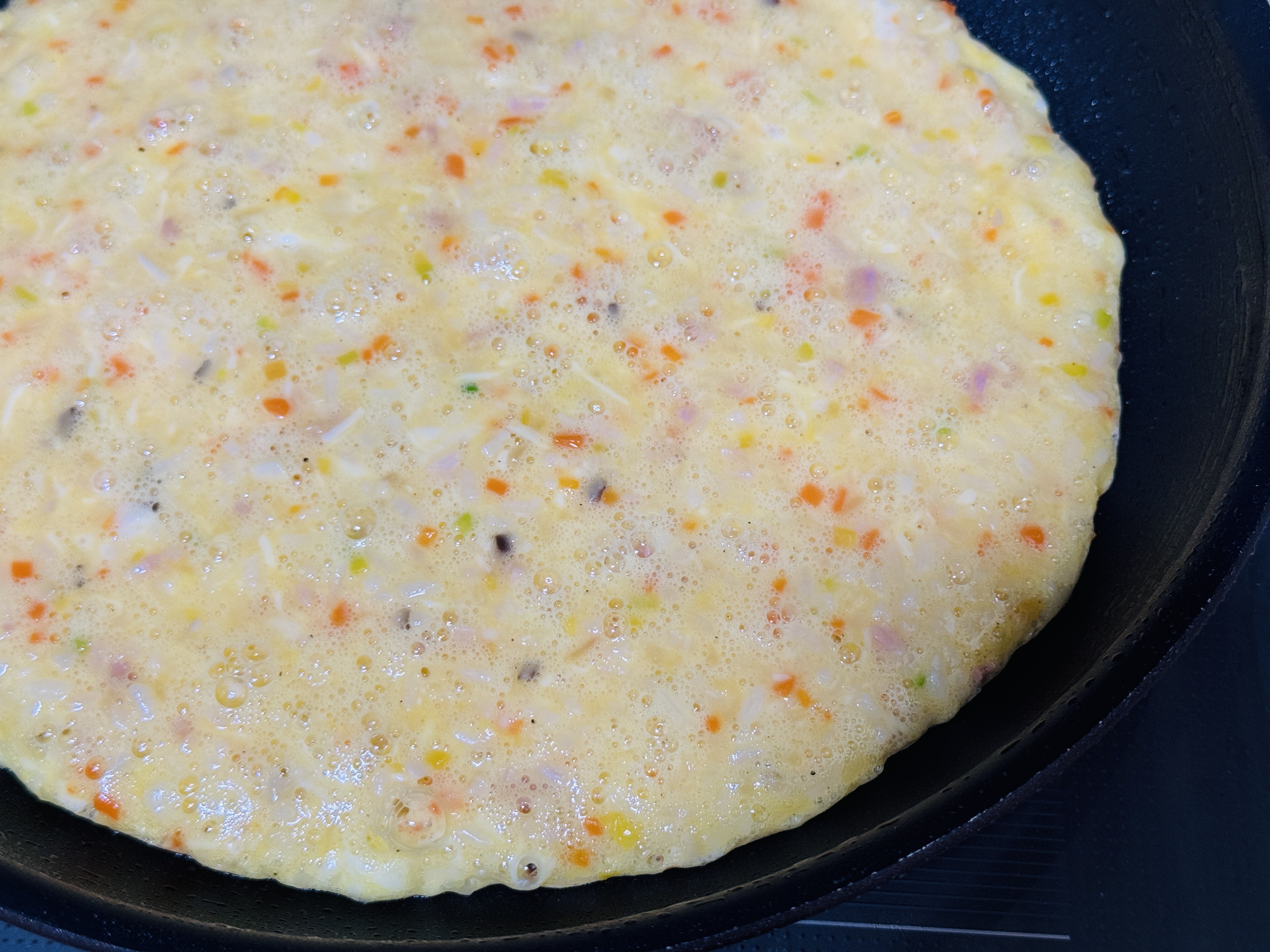어제 넉넉~하게 볶아둔 야채+베이컨 야채에치즈를 더해 계란말이 만들었어요:)재료달걀 4개야채베이컨피자츠지소금, 후추 약간전날 계란밥전을 하면서 넉넉하게 볶아 놓은것 사용해만드는 야