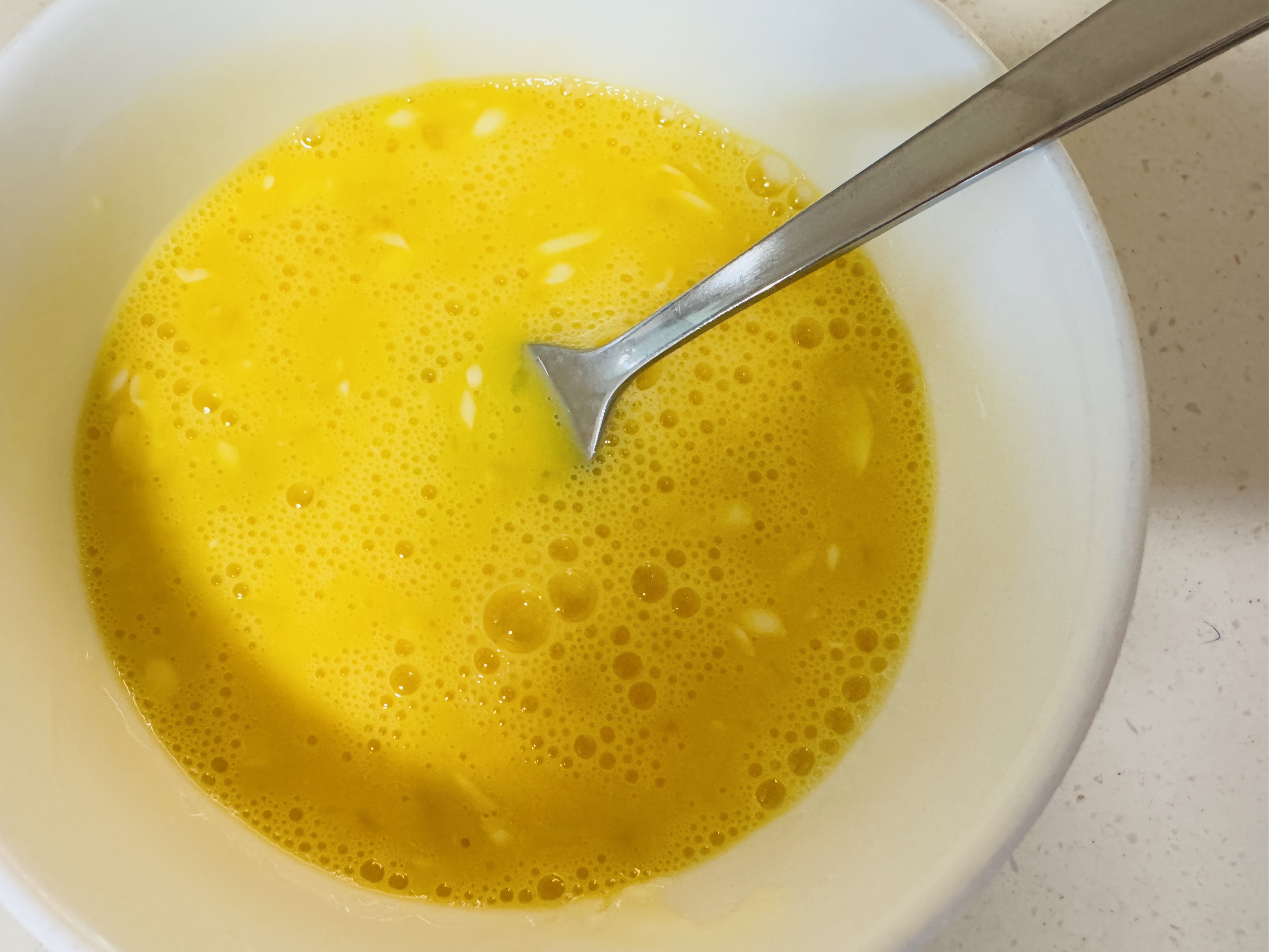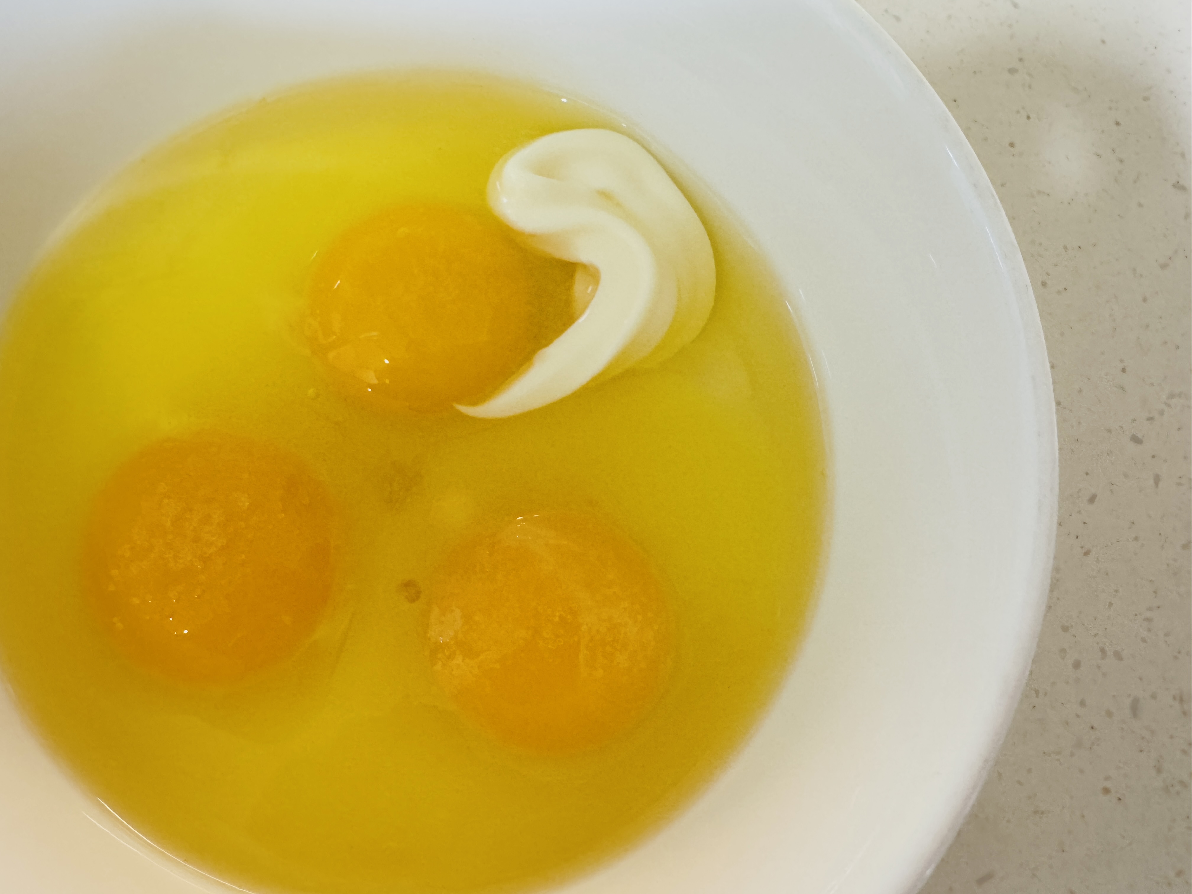달걀 3개에 소금 3꼬집 정도 넣고 설탕은 소금의 두배정도 넣어주세요. 마요네즈도 1/2T 넣어주세요.