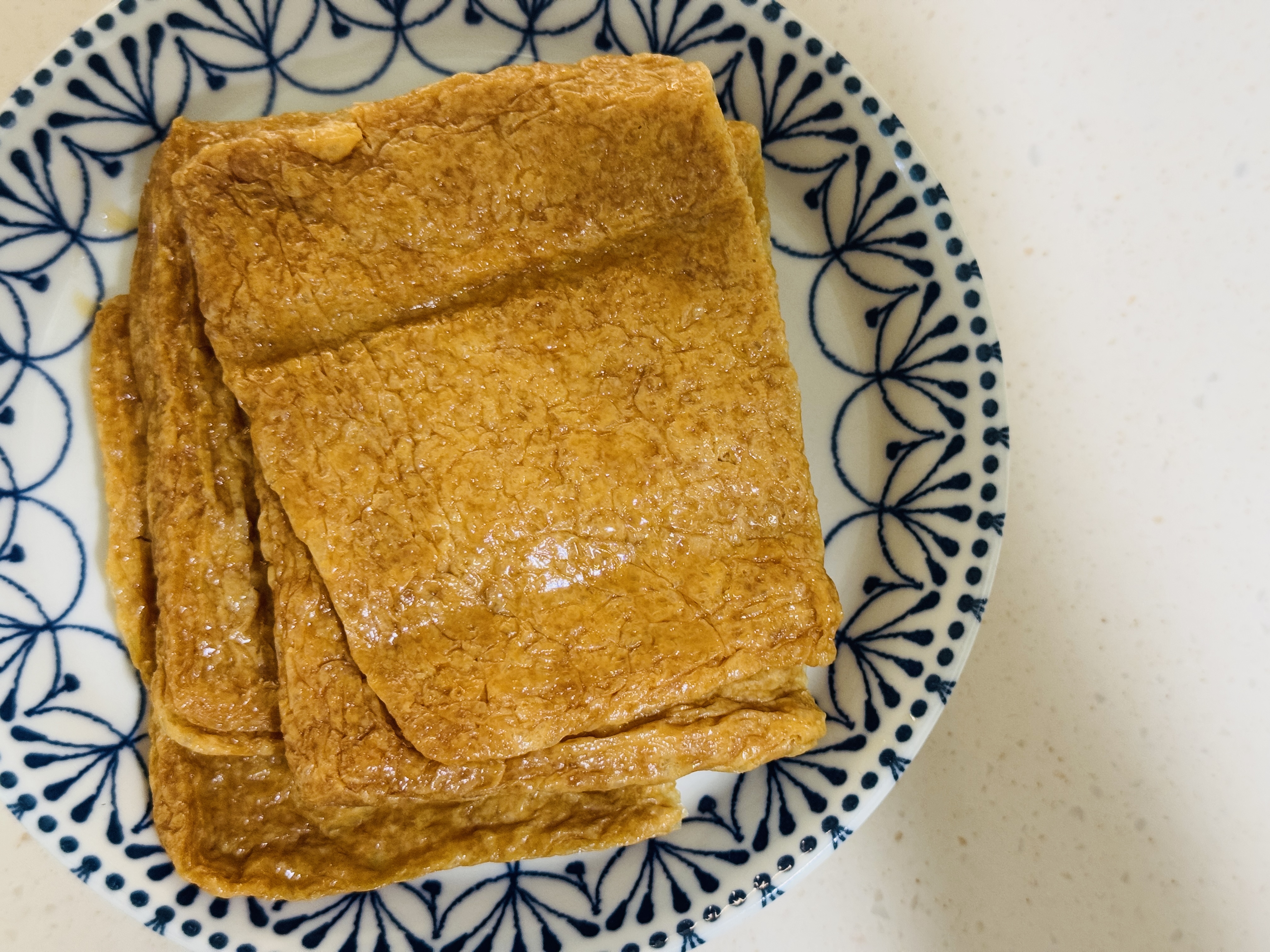 (저는 식자제 시장에서 사다놓은 대형 유부 5장 사용 하였어요. 속 재료도 따로 집에 있는 후리카케 사용하였는데 일반 마트에서 세트 사다 사용하심 편해요:)