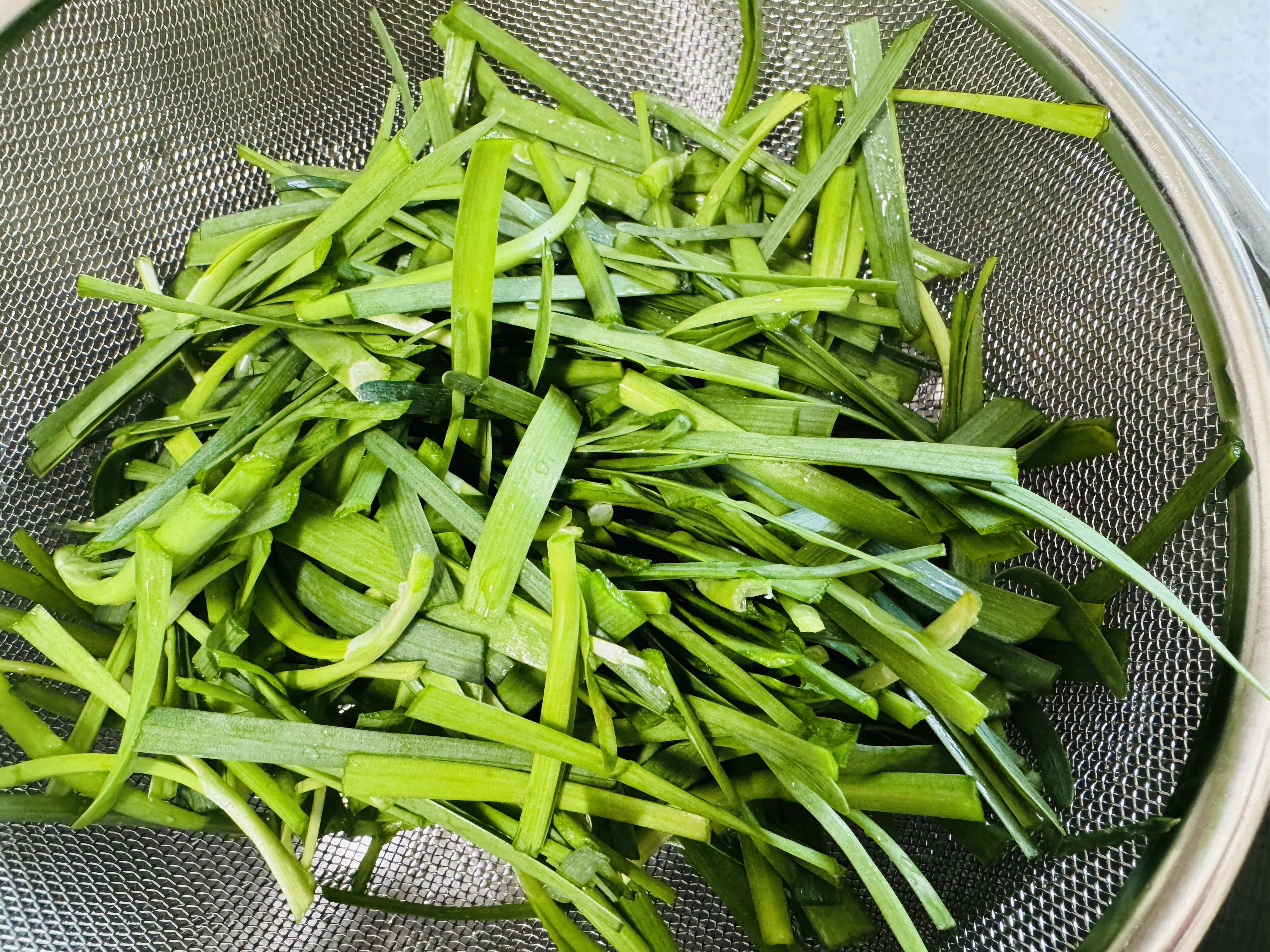 부추는 손가락 두마디 정도로 잘라 깨끗하게 씻은 뒤 끓는물에 살짝 데쳐 준비해 주세요.