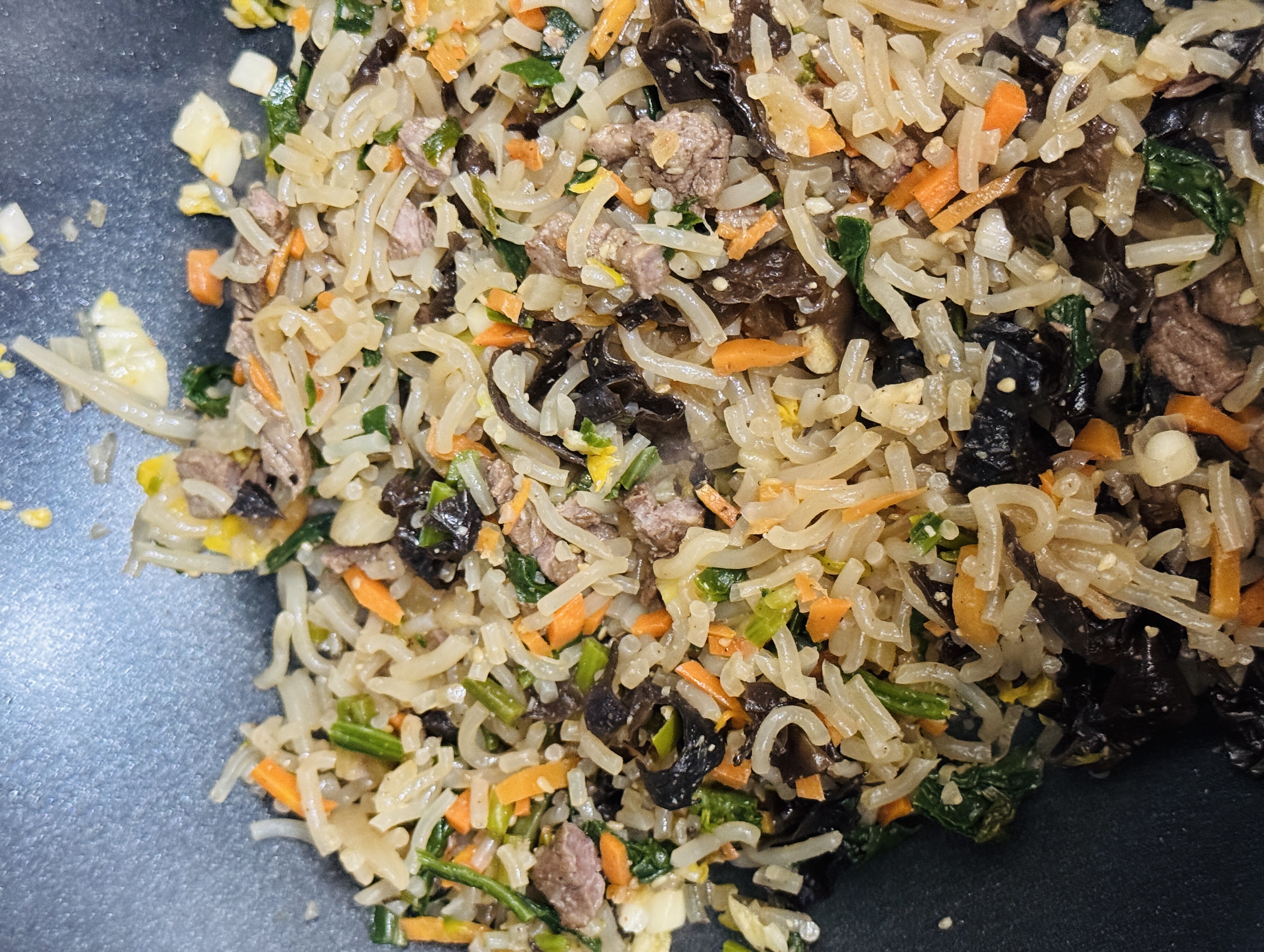 (잡채에 이미 기름이 많이 들어가서 기름 조금만 넣었어요)