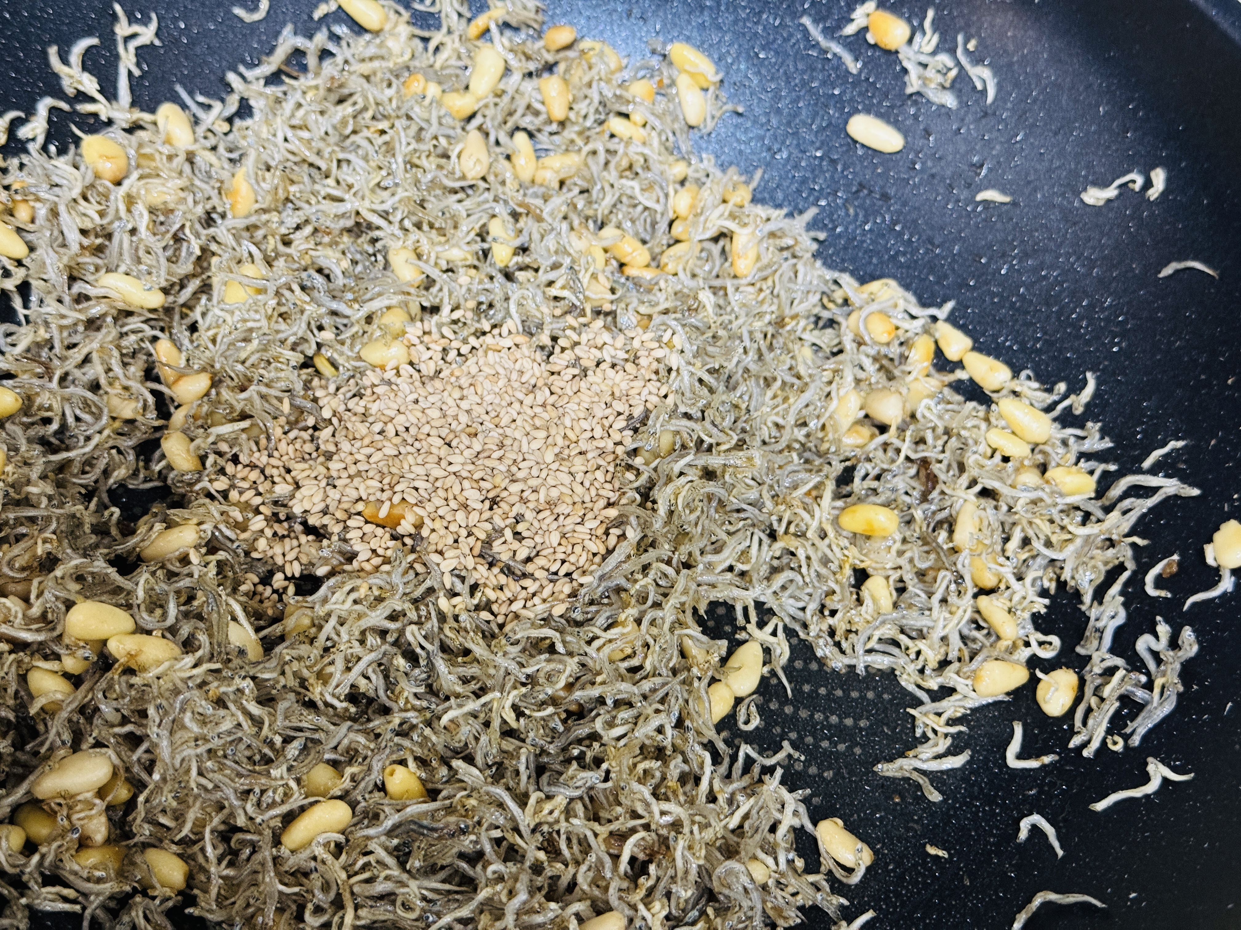 한번 만들어 두면 오래 먹기 좋은 멸치 볶음! 사다놓은 멸치와 잣이 있어 만들었어요:)