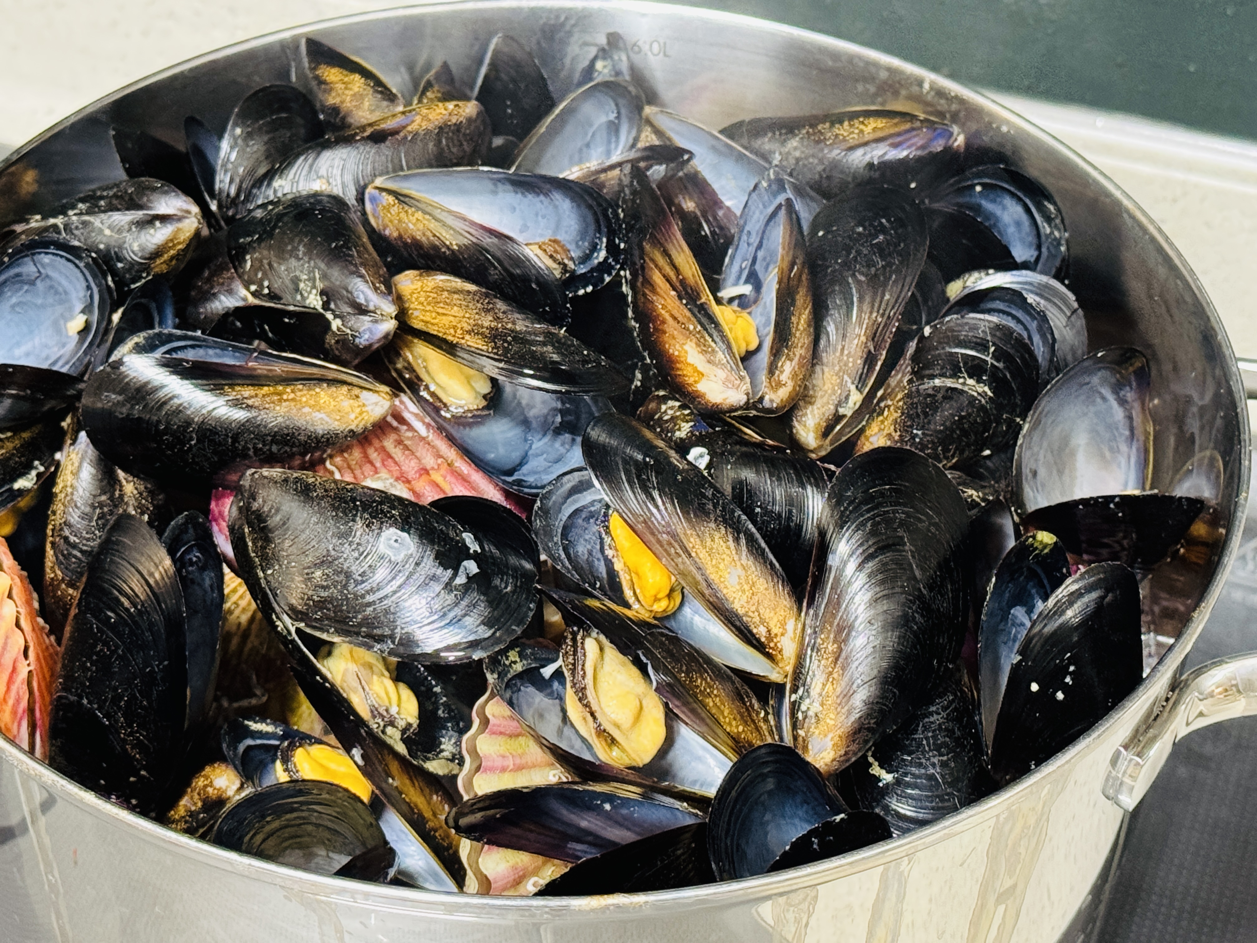 홍합은 금세 입을 벌리더라고요.. 15분 지나서 작은 조개들부터 꺼냈습니다.