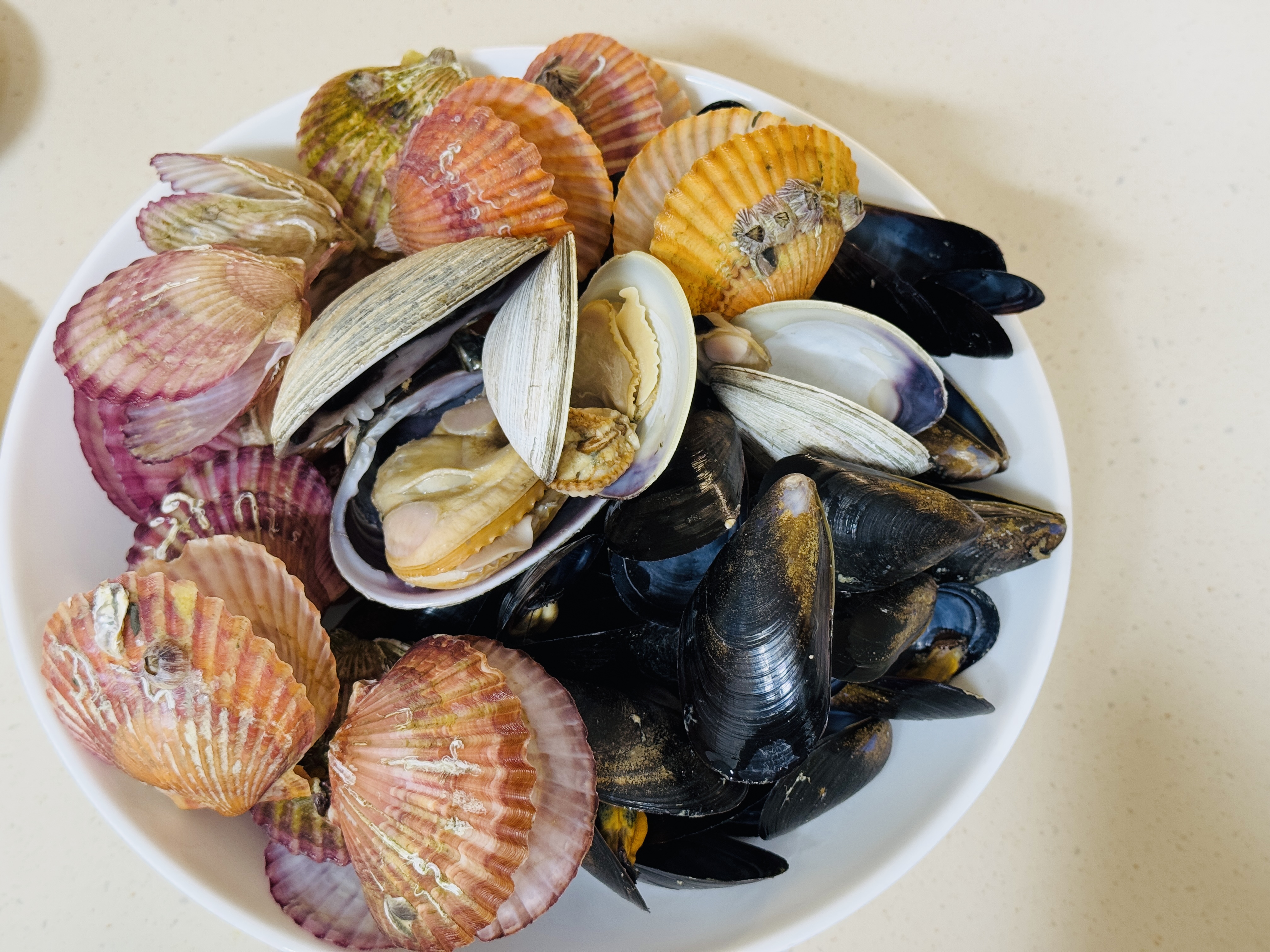 조개는 깨끗하게 씻어 소금물에서 1시간 이상 해감시켜 주세요. 가리비는 해감 안해도 된다는 말도 있었는데 전 걍 다같이 했어요ㅎ