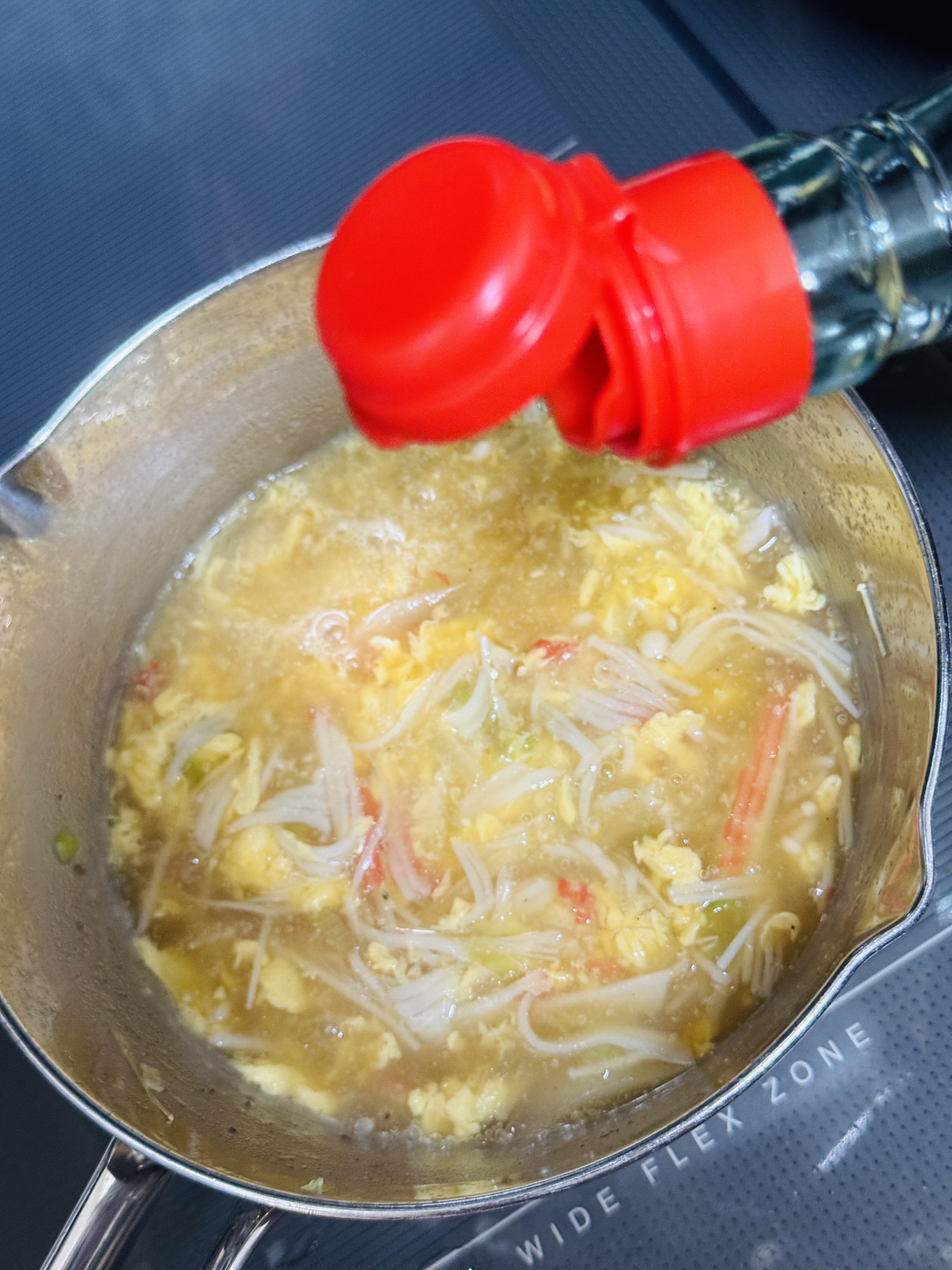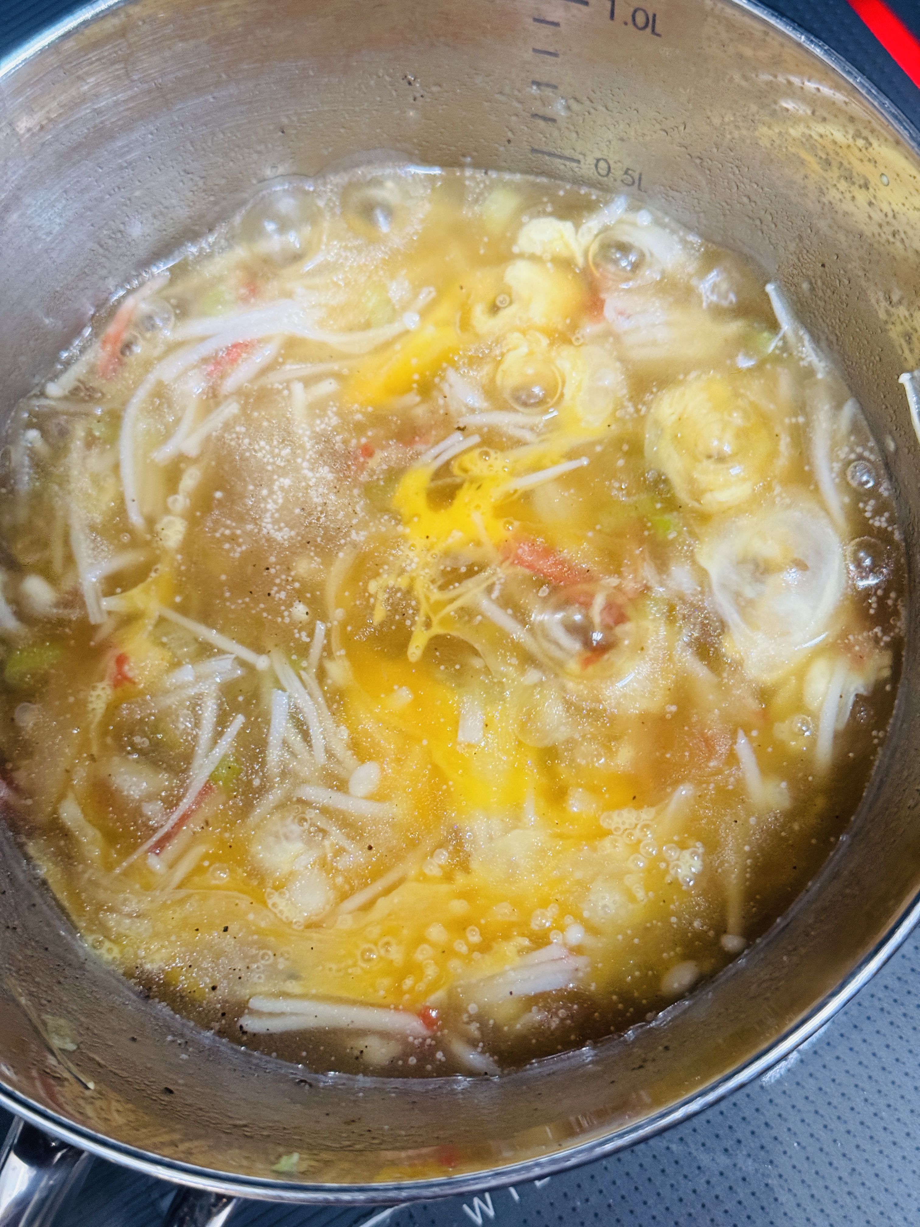 크래미를 넣고 후추와 소금으로 간을 맞춰주세요.