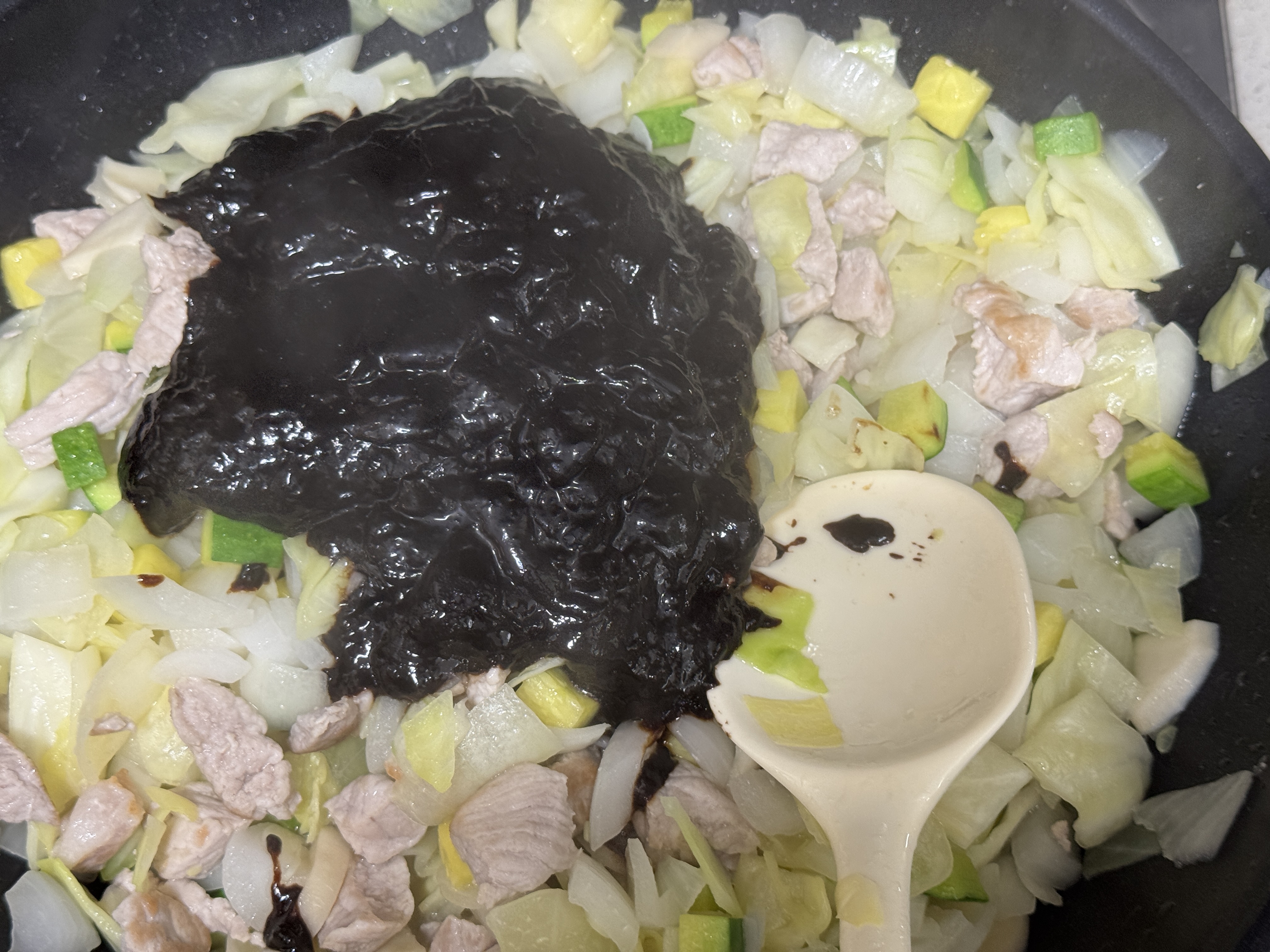 봉지 뒷면에 나온대로 야채 양 넣었고 양배추 좋아해서 추가했어요ㅎ 조리법도 그대로 따랐는데 아주 맛있고 파는 짜장면 맛이 나더라고요ㅎ 그래서 소개해 봅니다:)