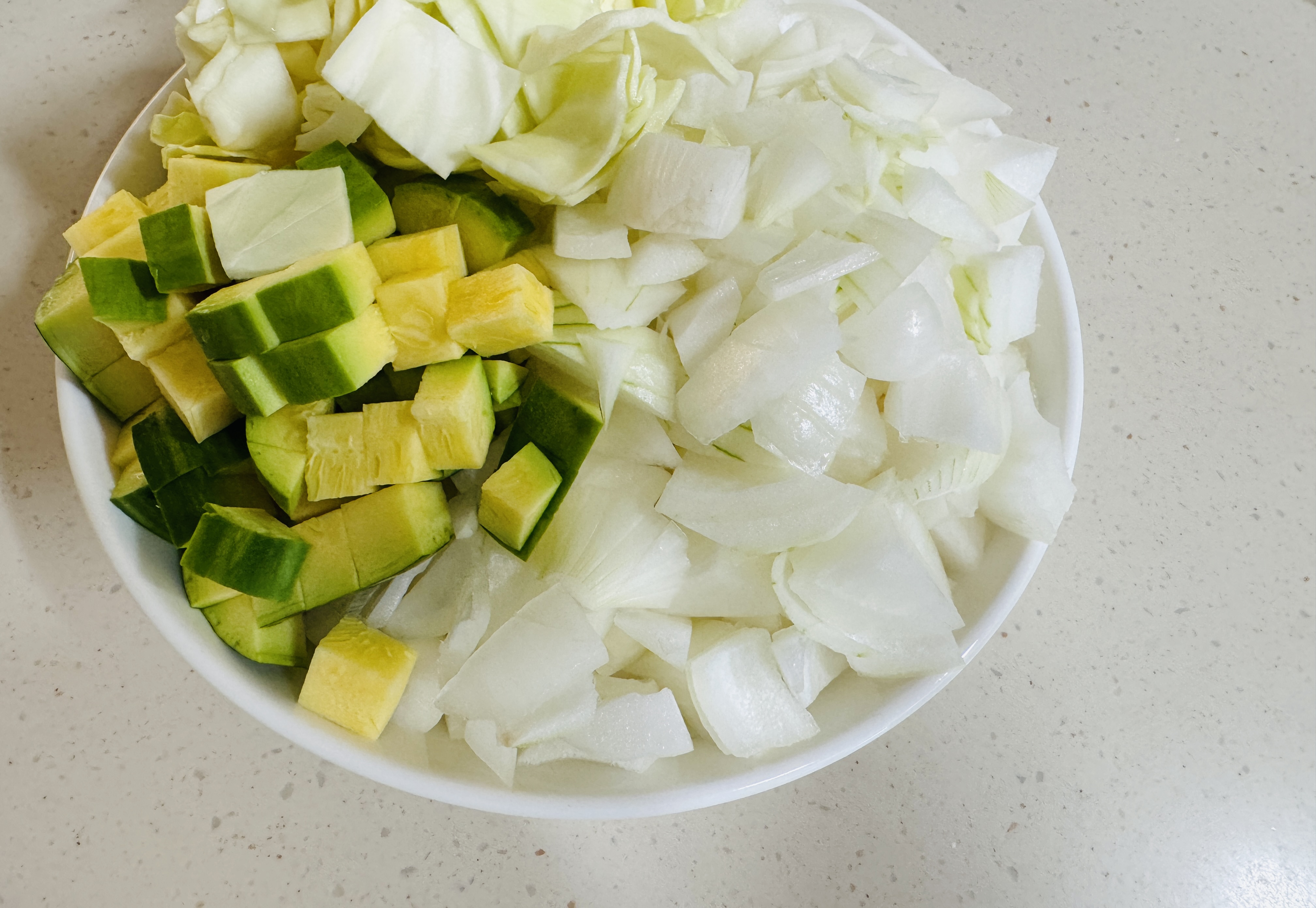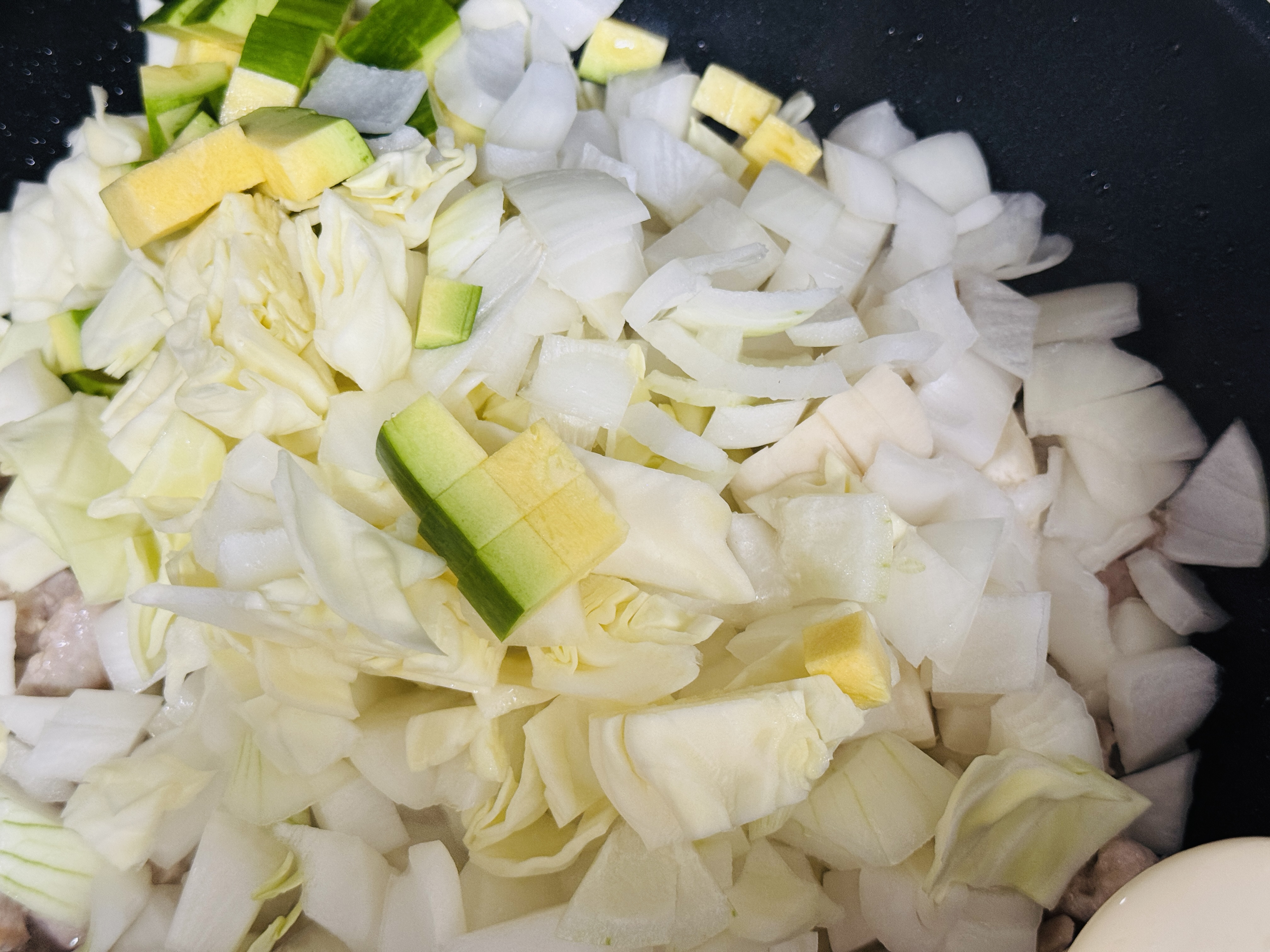 애호박, 양파, 양배추는 작게 잘라 준비해 주세요.