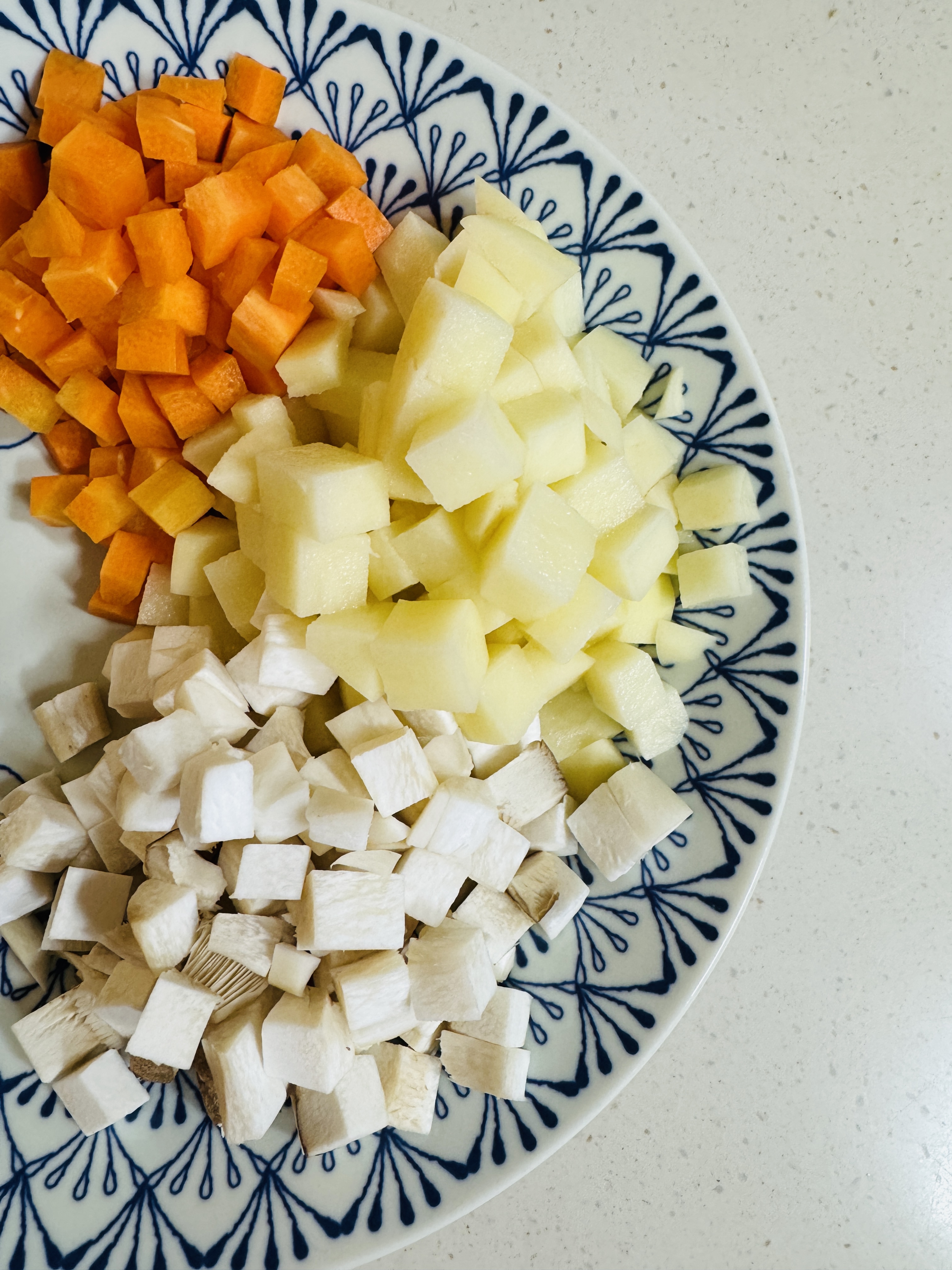 감자, 당근, 버섯은 작게 잘라줍니다.