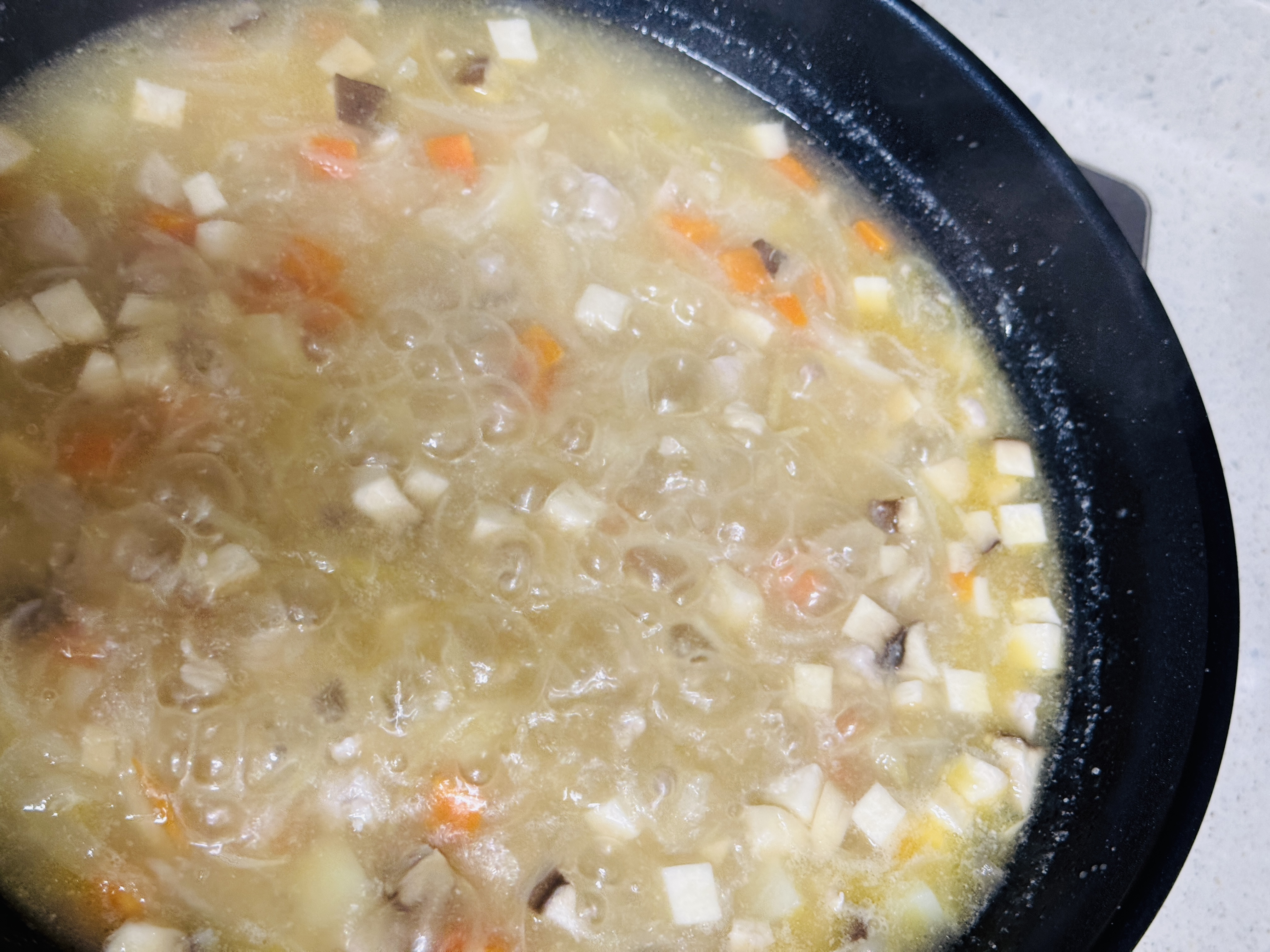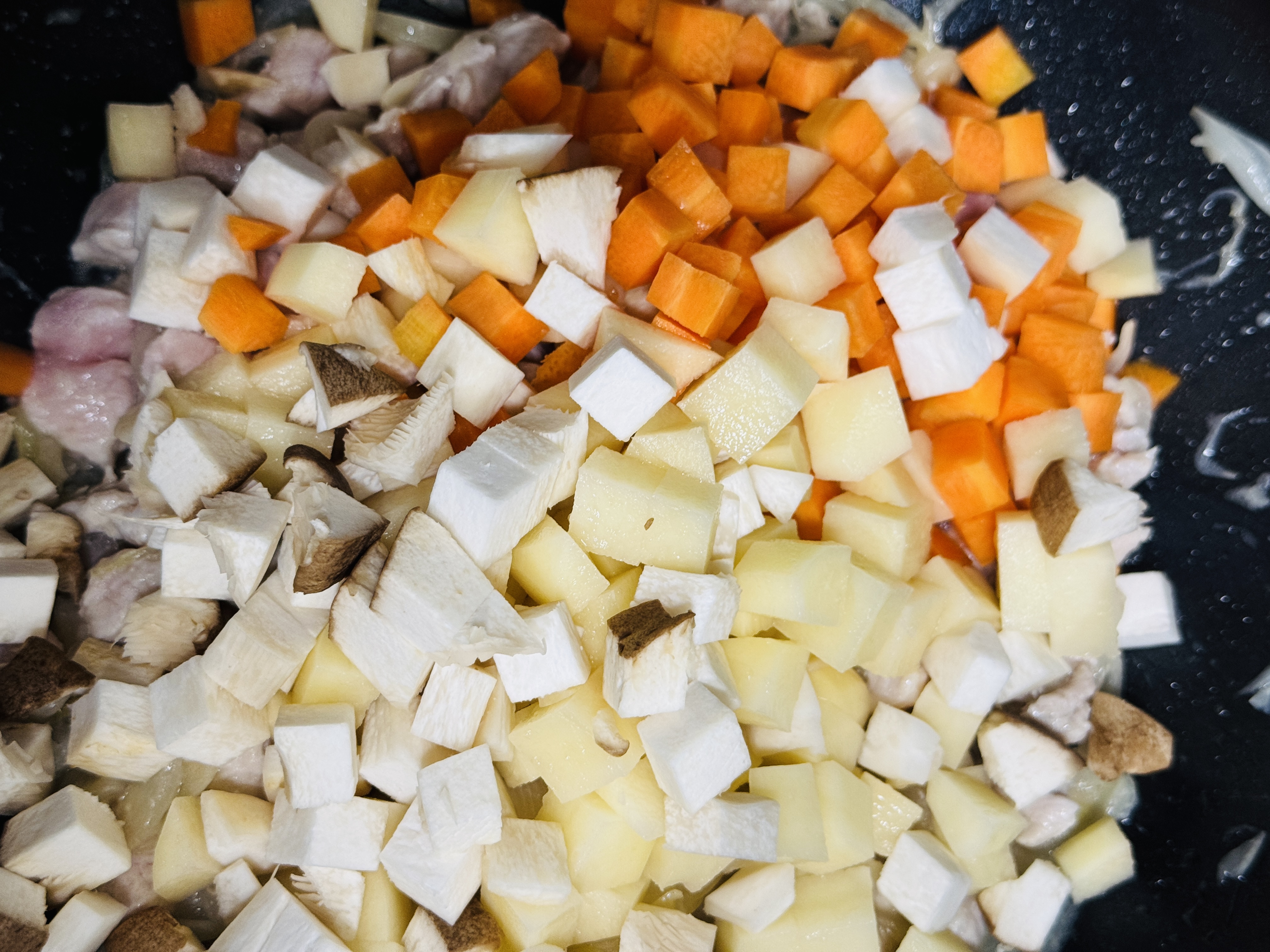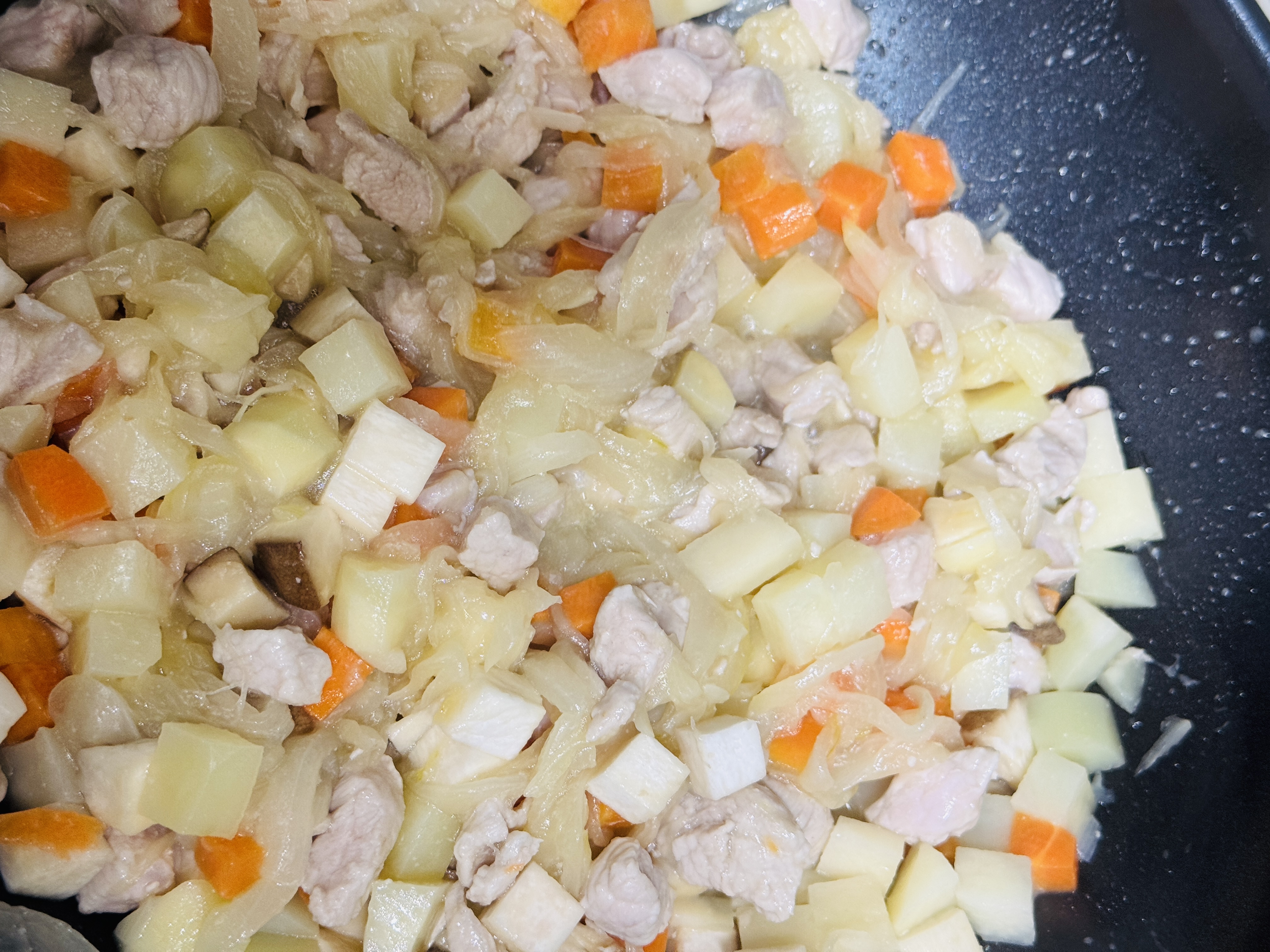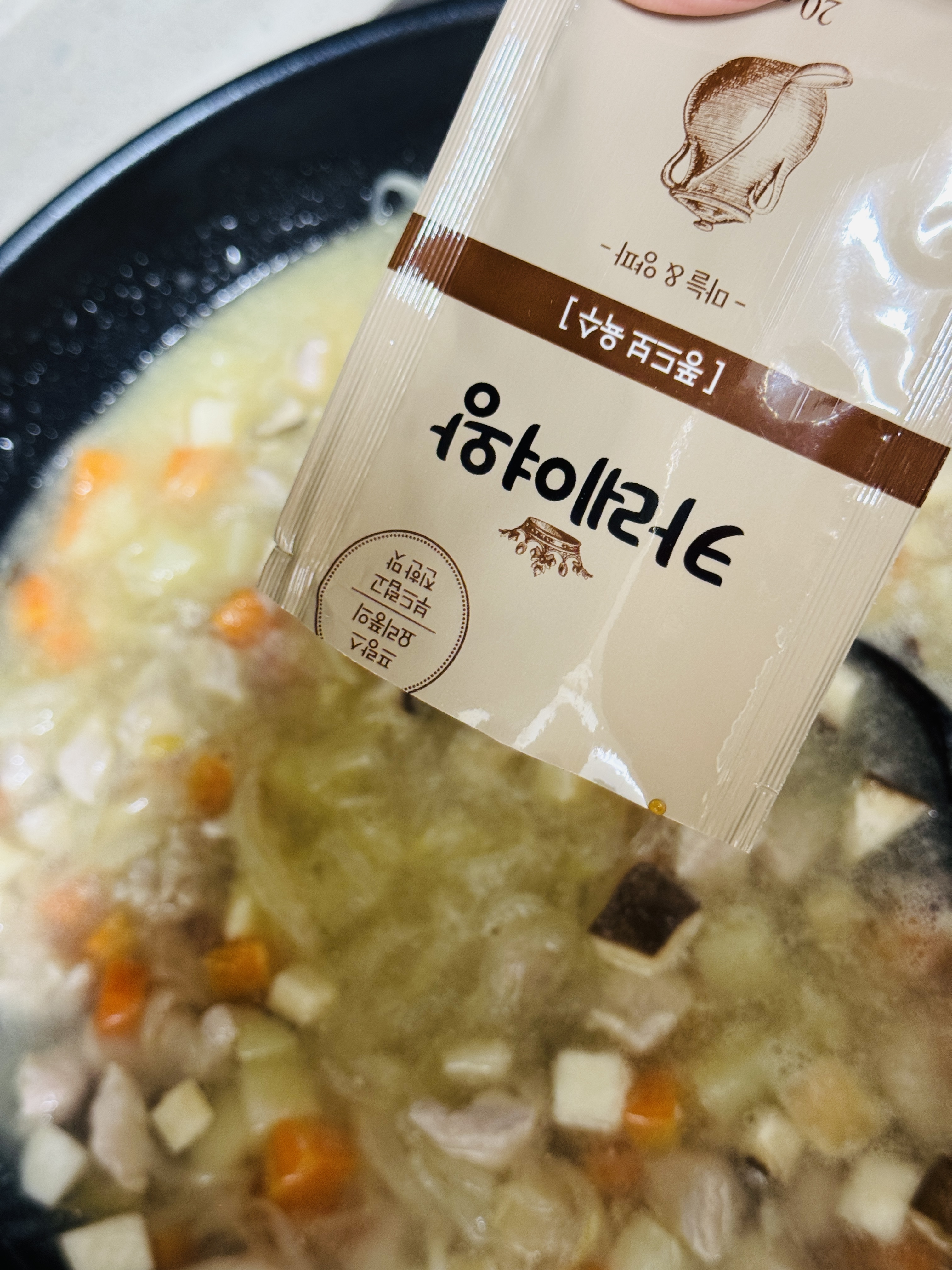 저는 감자를 좋아해서 더 많이 넣고 고기는 그때 그때 있는 것을 사용하는 편이예요ㅎ 닭고기 넣어도 맛있어요:)