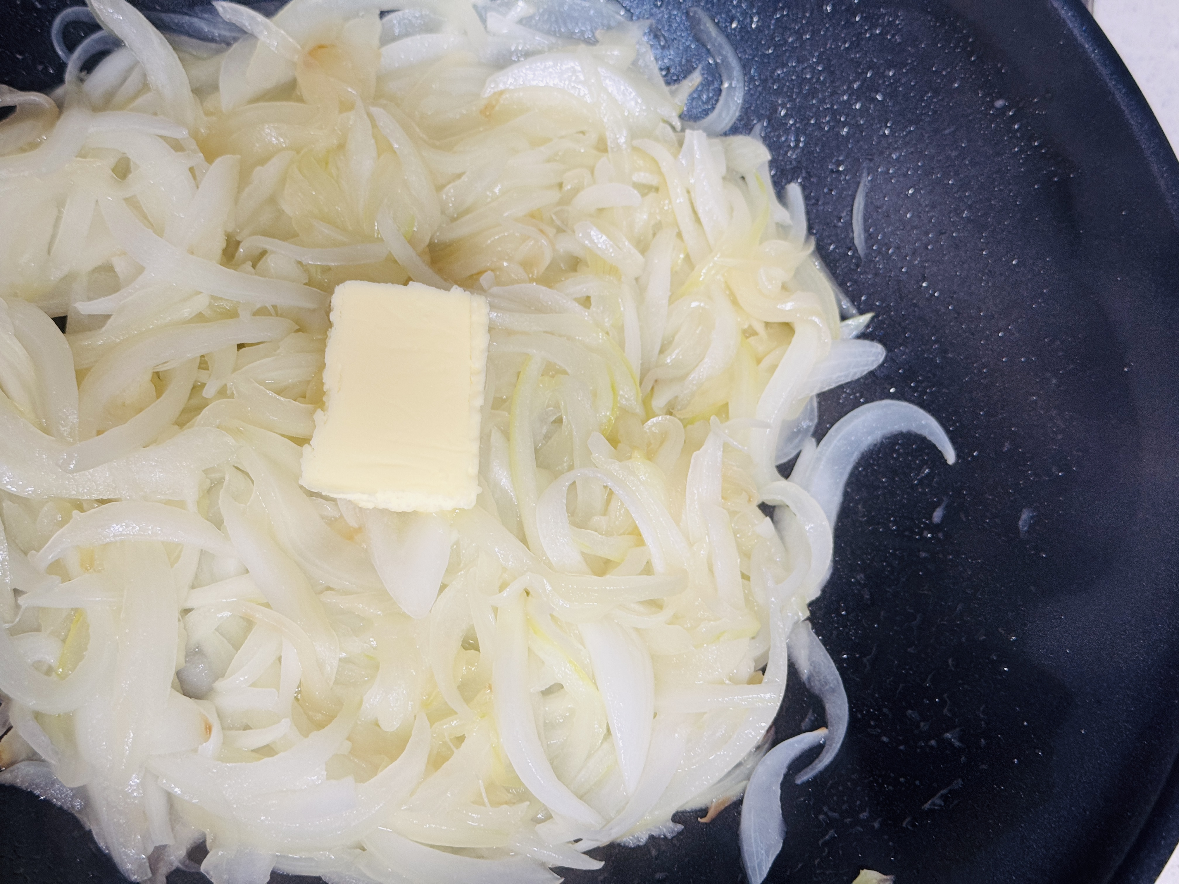 양파가 어느정도 흐물흐물해 지면 버터를 넣어 갈색빛이 돌때까지 볶아주세요.