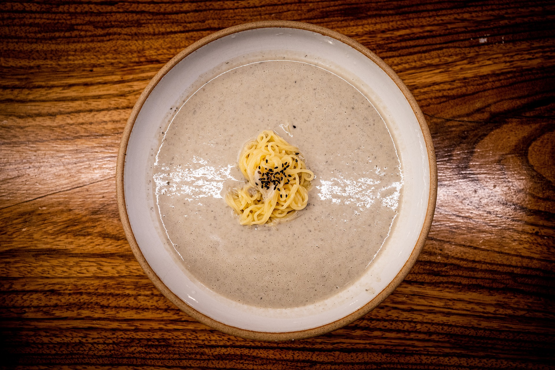4. 믹서기에 콩을 넣고 생수를 콩보다 1~2cm 높게 물을 넣어주세요. 물을 조금씩 더 넣어가면서 부드러운 질감이 나올 때까지 갈아주세요. 소금으로 간을 맞춰 주세요.