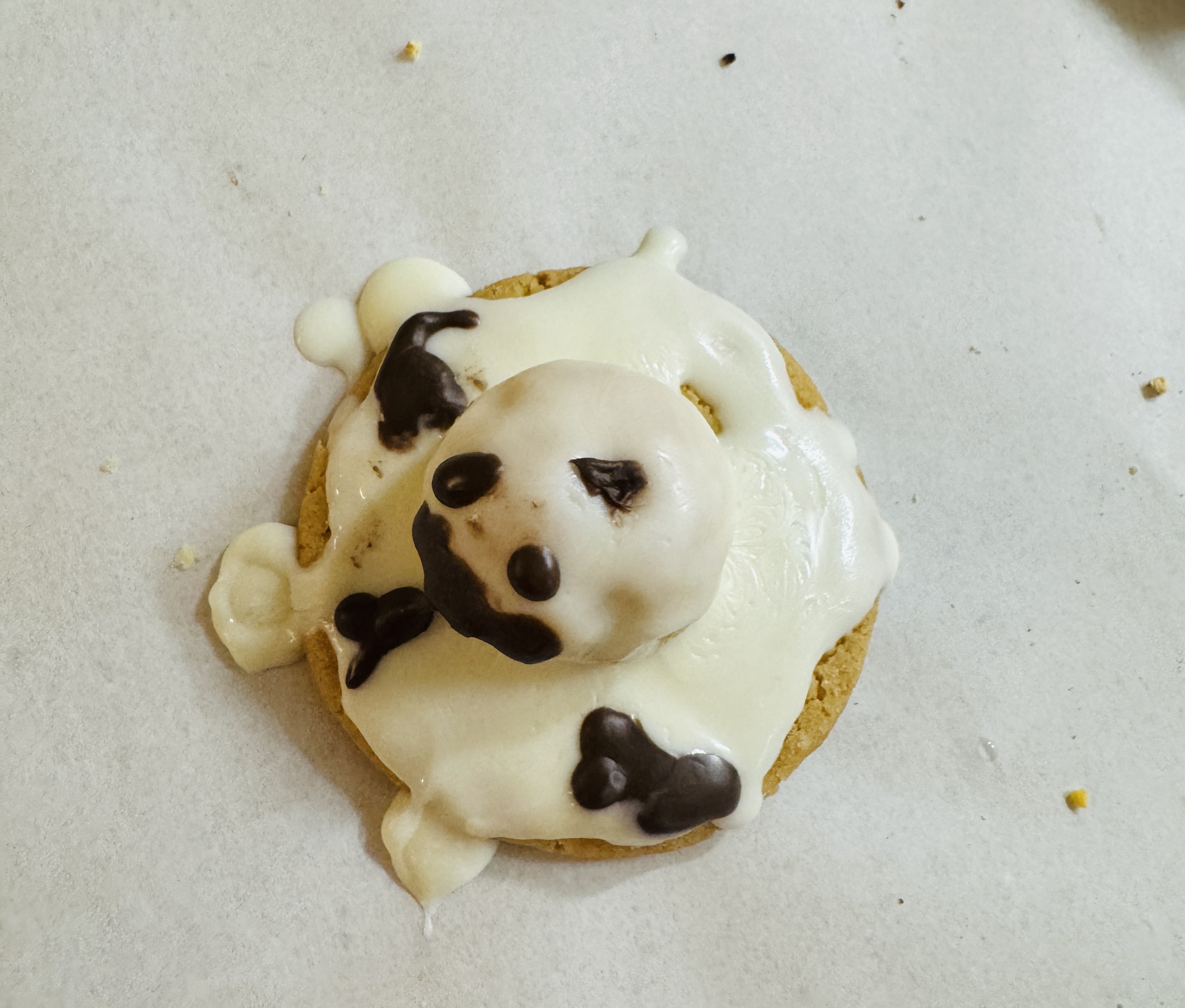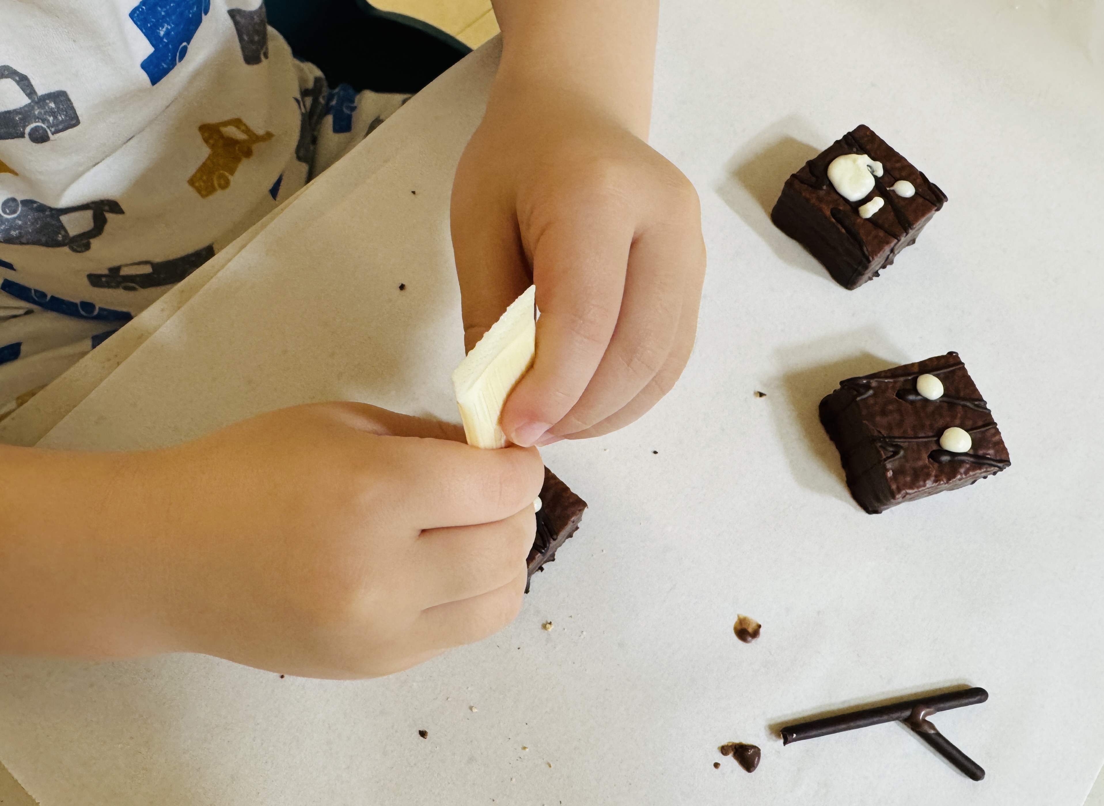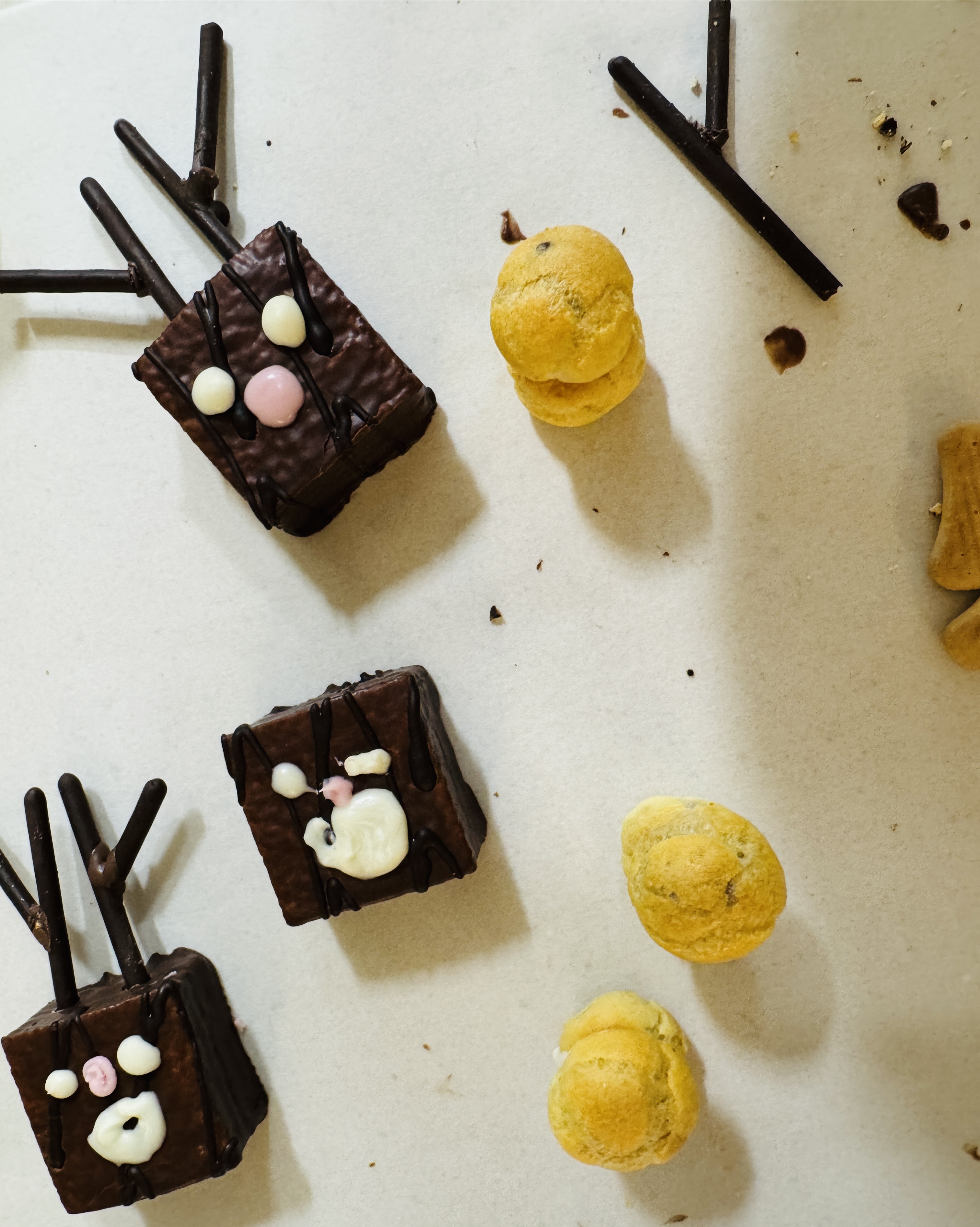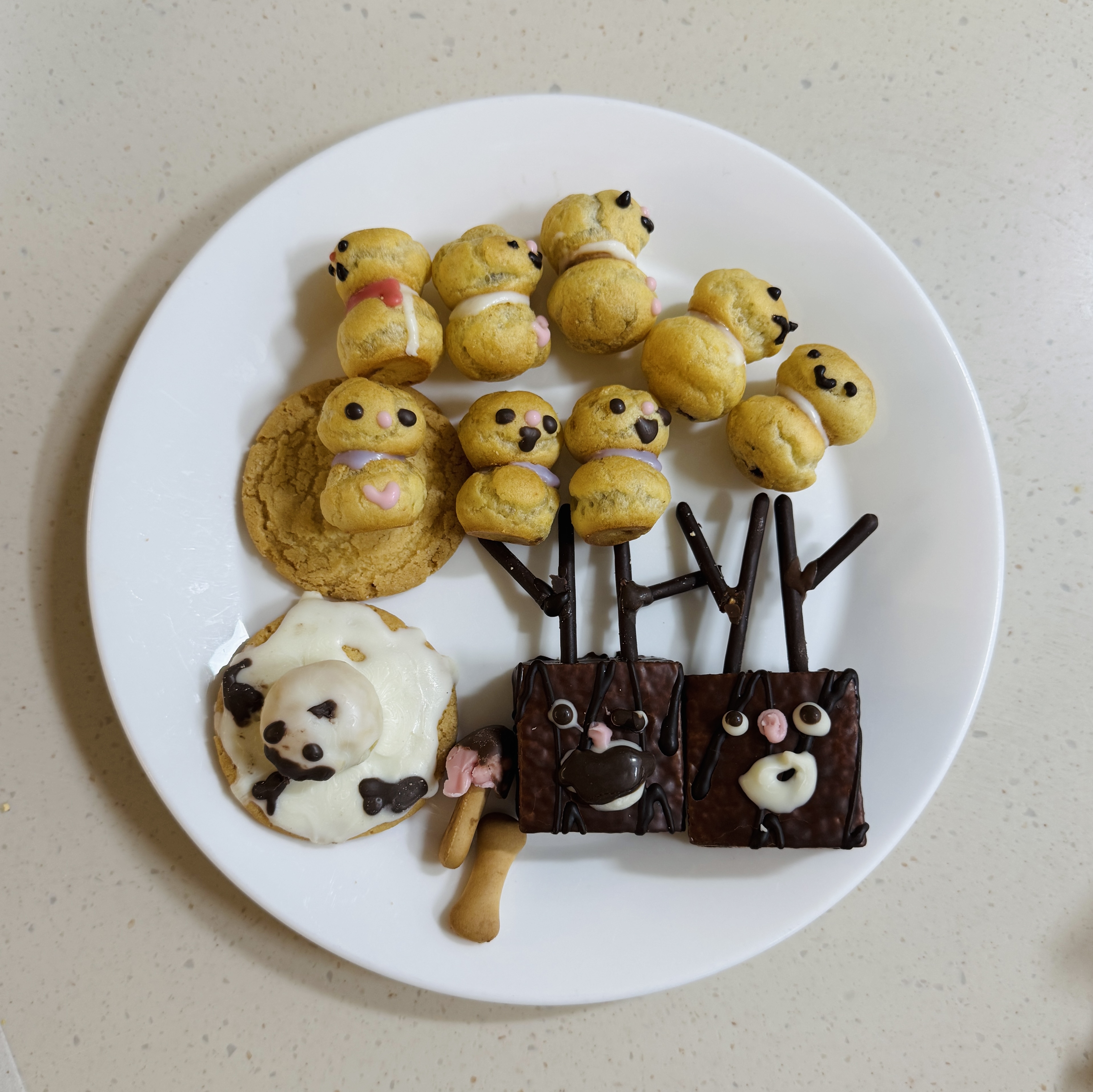 오예스에 눈코입 초콜릿이 마르면 눈동자를 그려주세요!