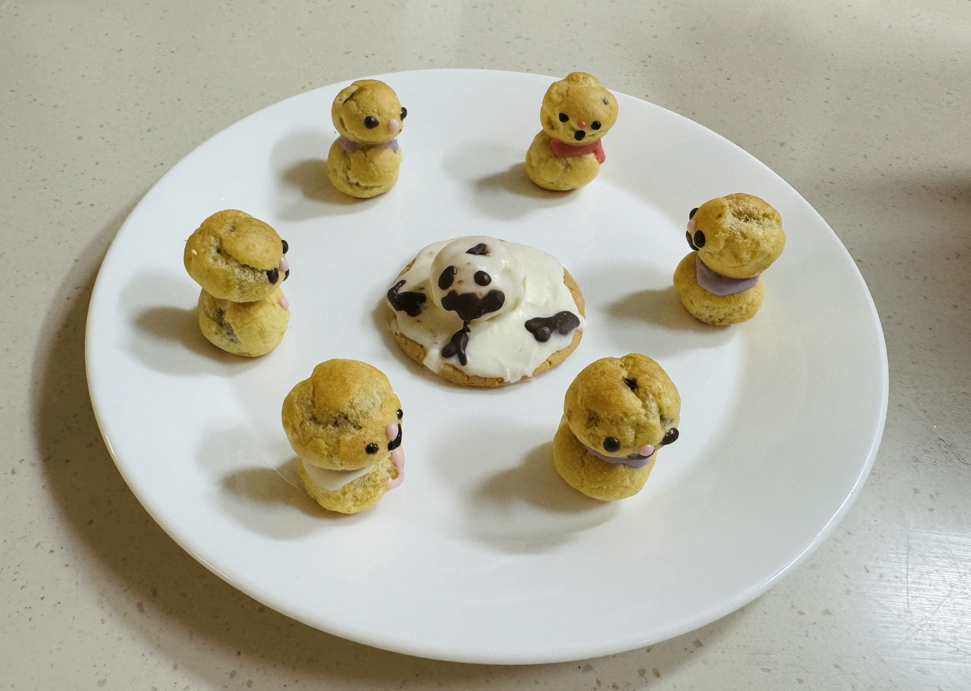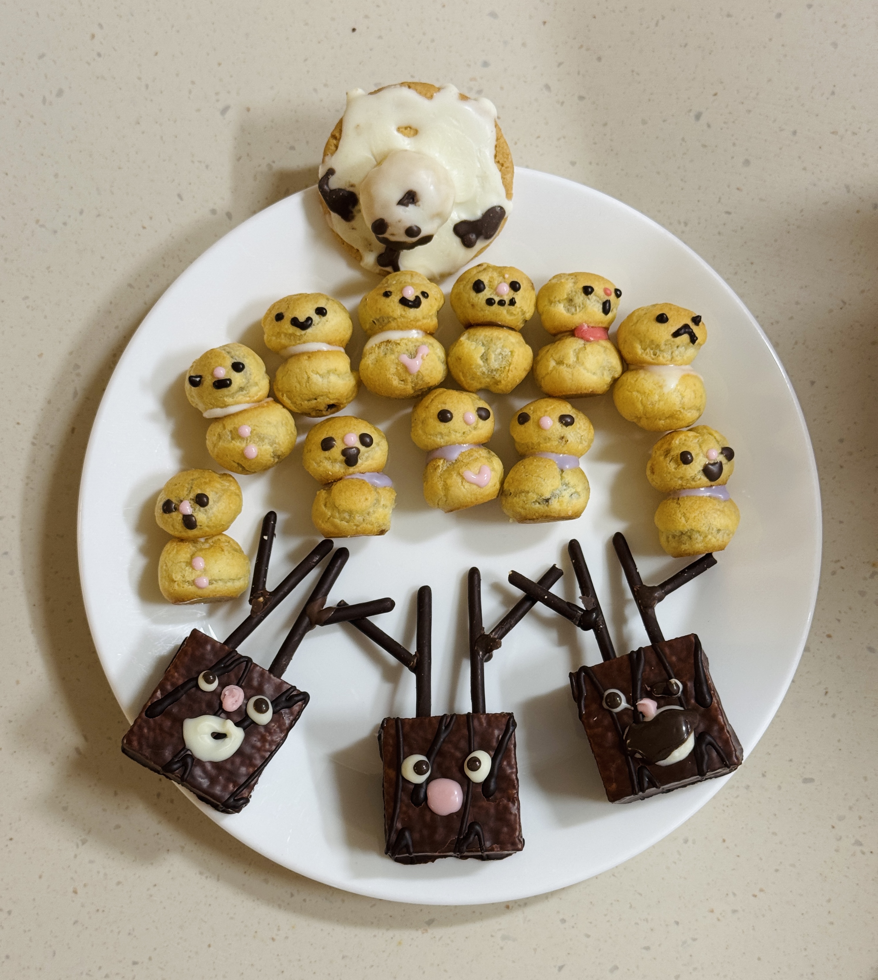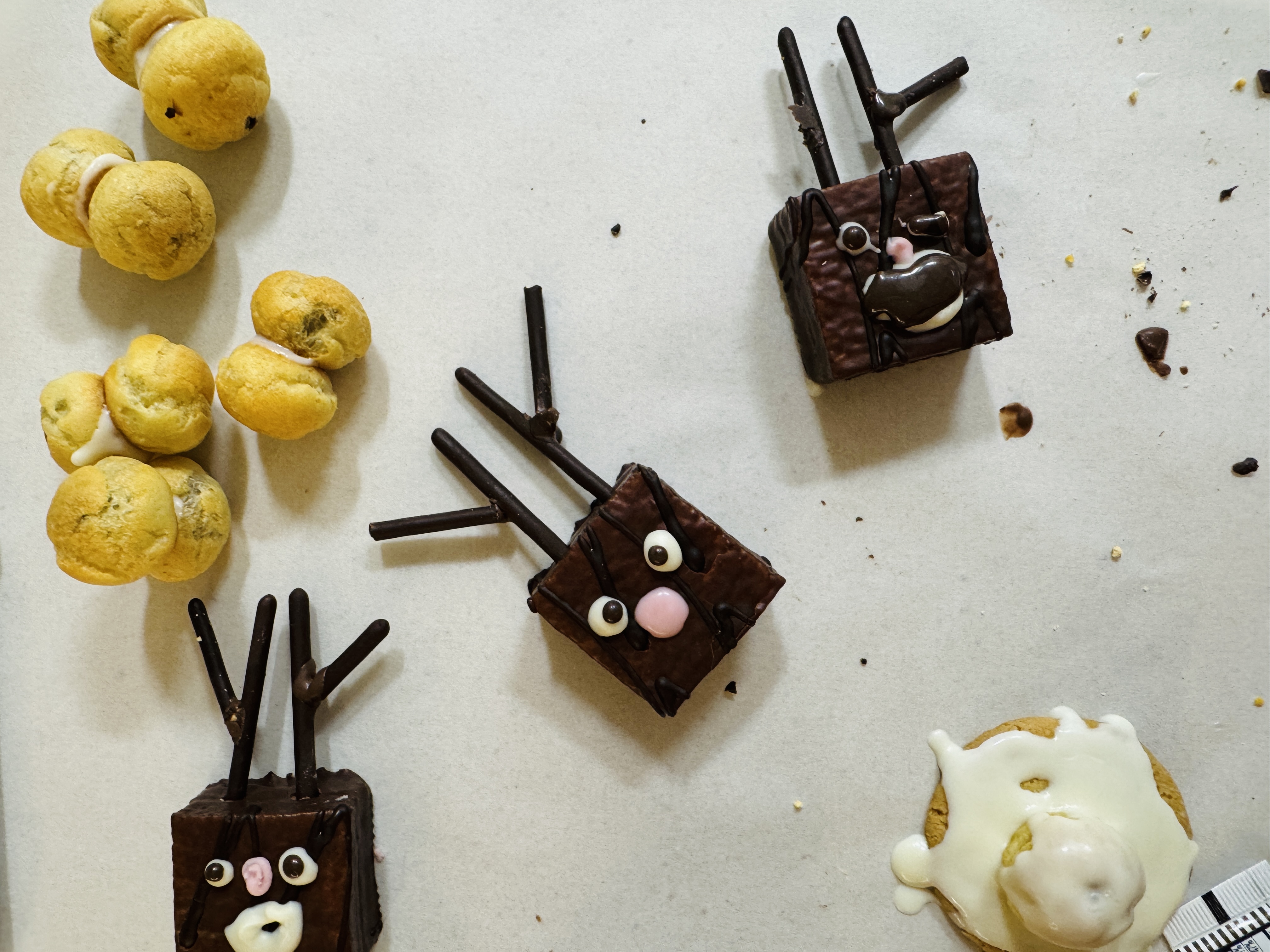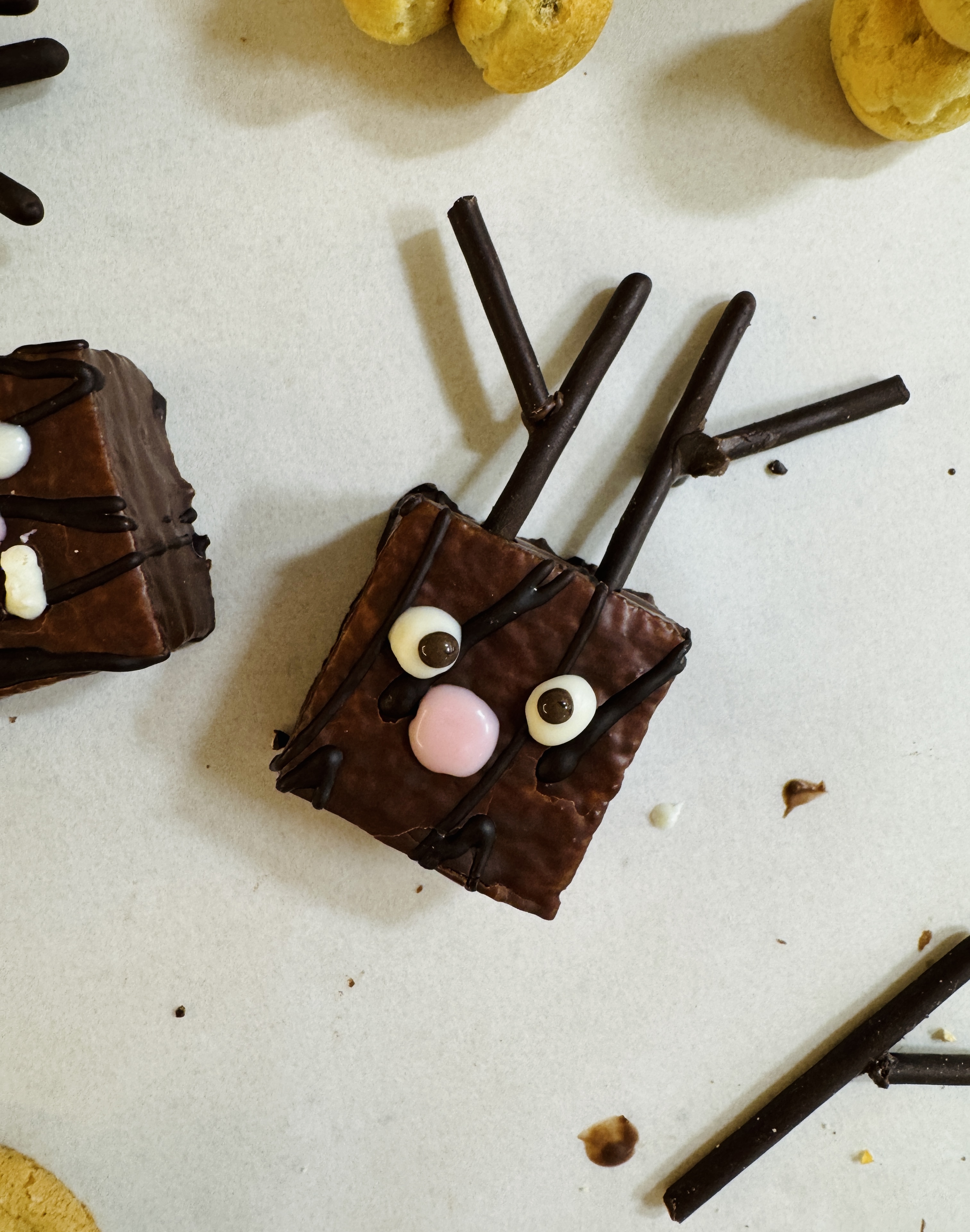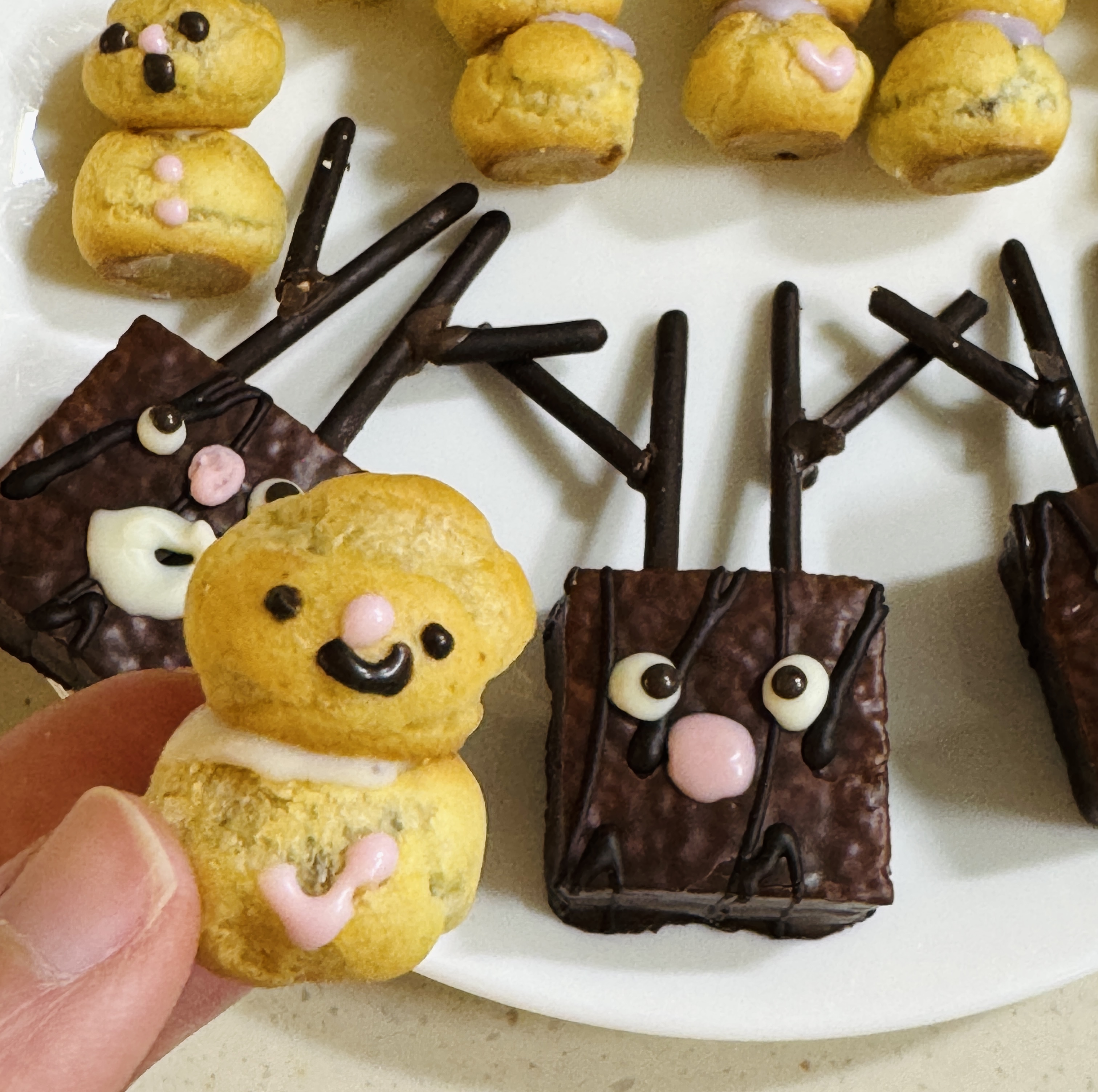 오예스에 눈코입 초콜릿이 마르면 눈동자를 그려주세요!