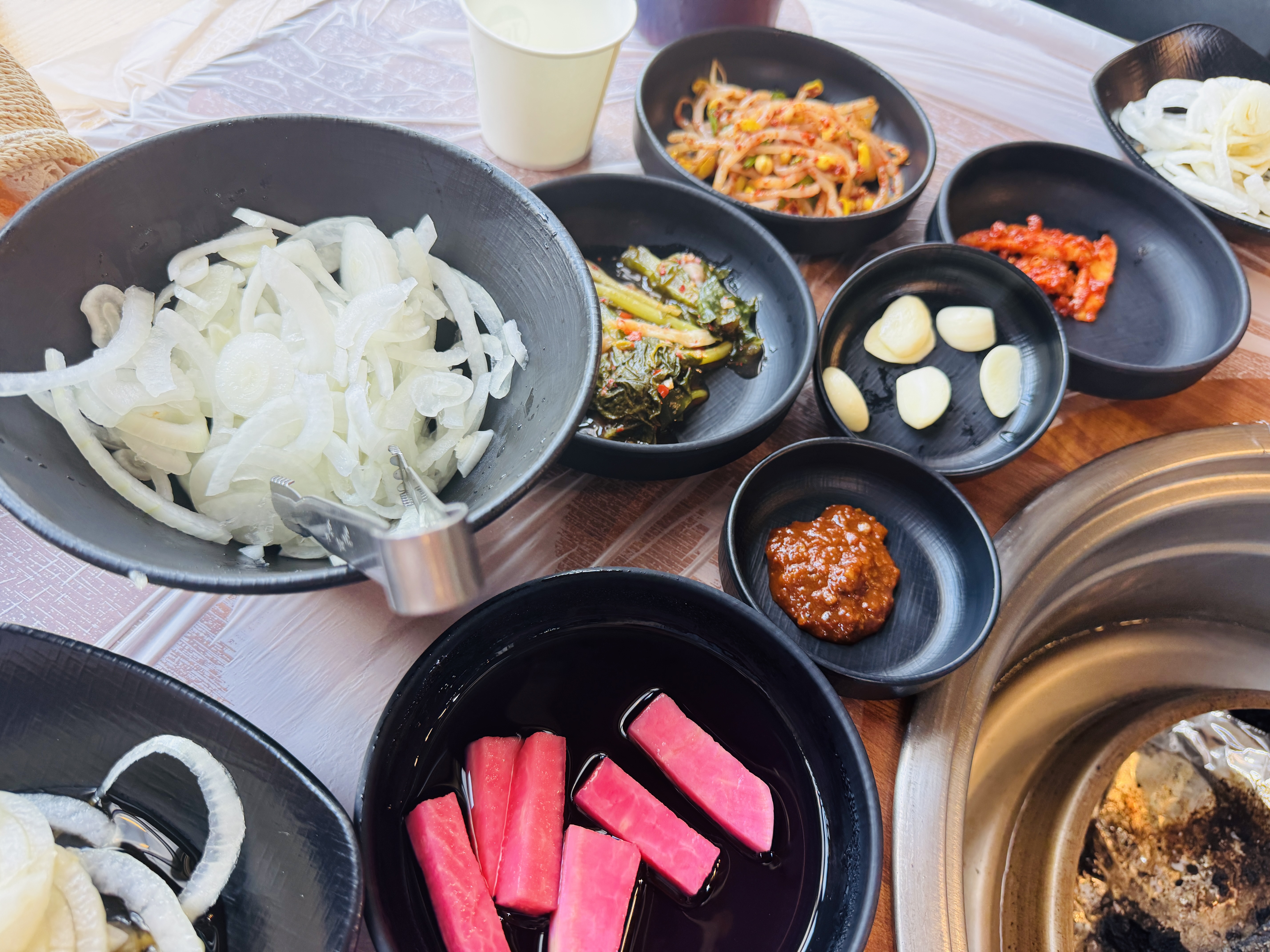 기본적인 밑반찬들. 다 맛있어요:) 저는 특히 마늘쫑 짱아찌가 맛있었어요ㅎㅎ