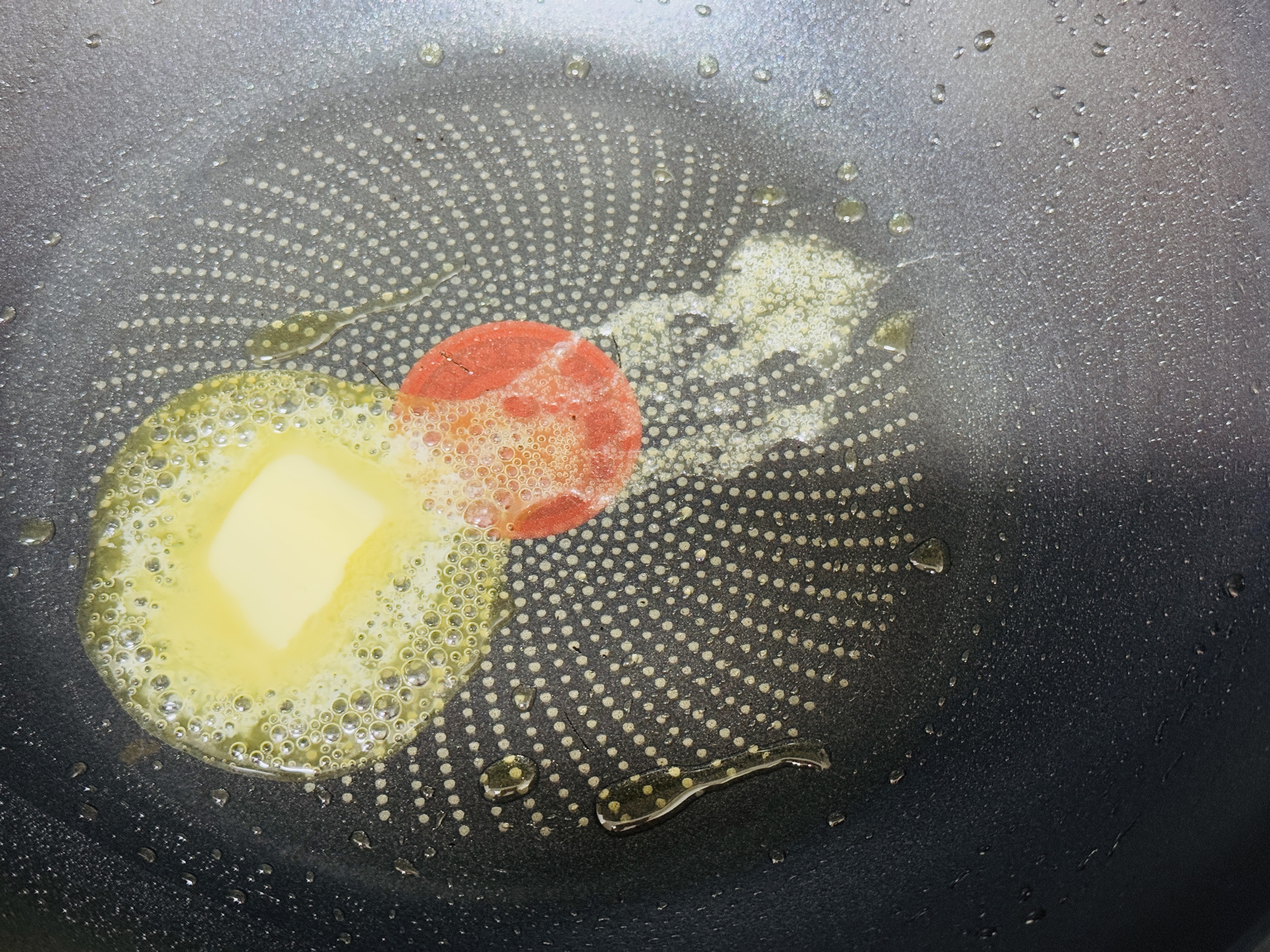 기름 두른 펜에 버터 1조각 넣어 녹여주세요.