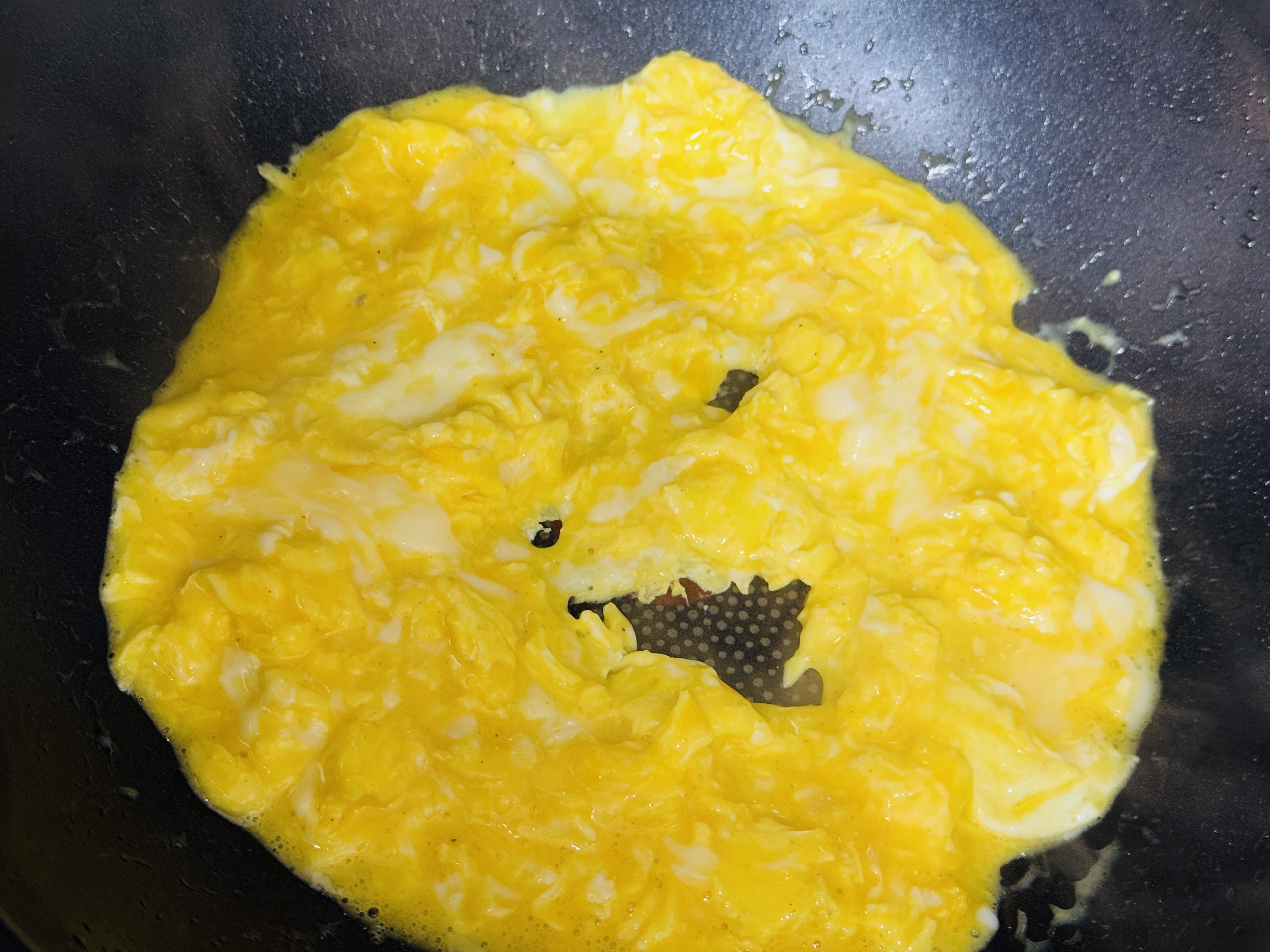 버터가 녹으면 약불로 해놓고 달걀을 넣어 버터와 잘 섞어주세요. 살짝 그대로 두었다가 아랫부분이 살짝 익은 것 같으면 한번씩 섞어 스크램블 만들어 주세요.