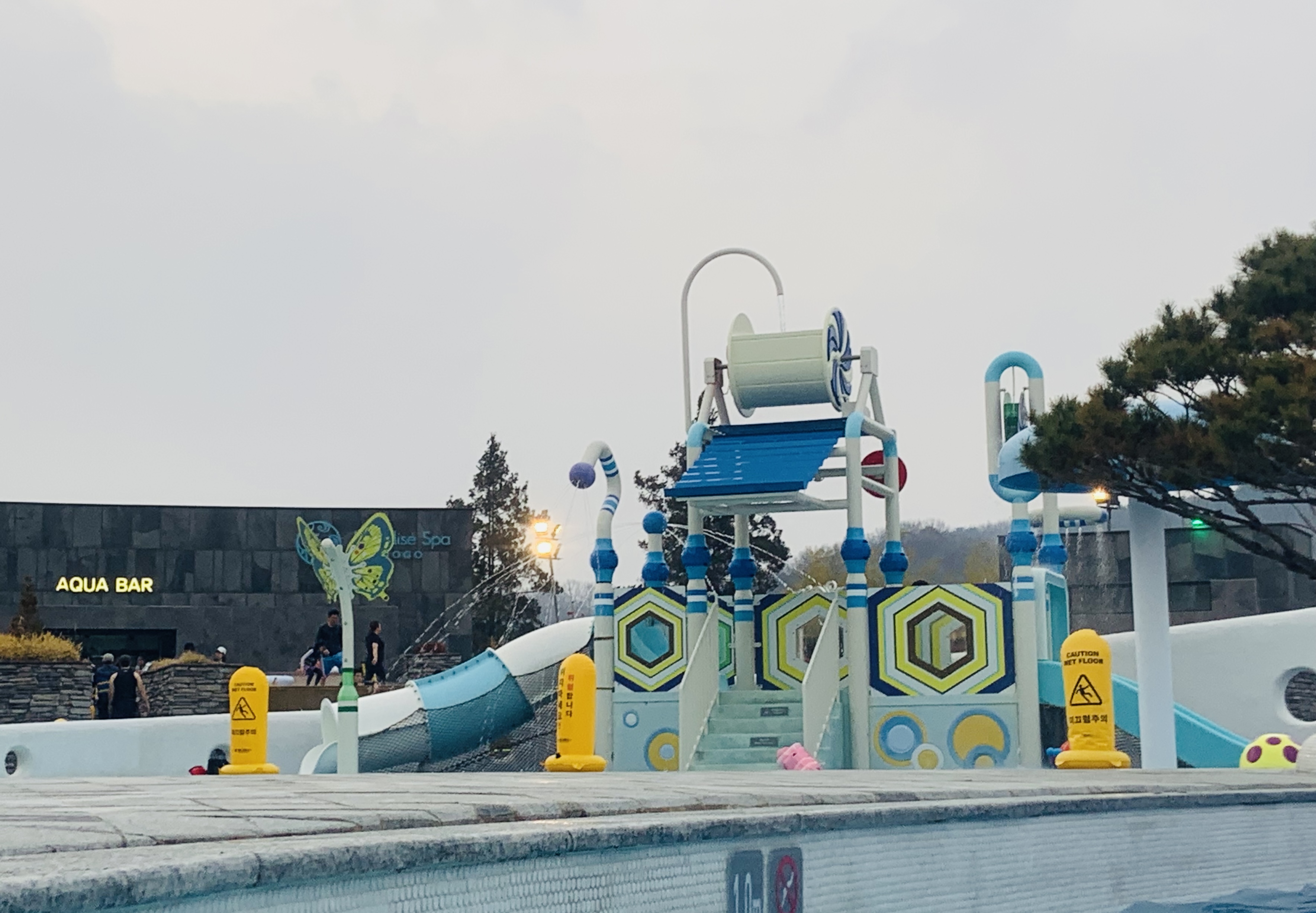 저희 가족이 가장 맘에 들었던 곳은 동그란 탕 3개가 모여있는 곳이었는데 온도도 좋고 거기서 바라보는 풍경도 좋아서 유수풀에서 뛰어갔다 실내로 들어갔다.. 하면서 놀았네요ㅎ