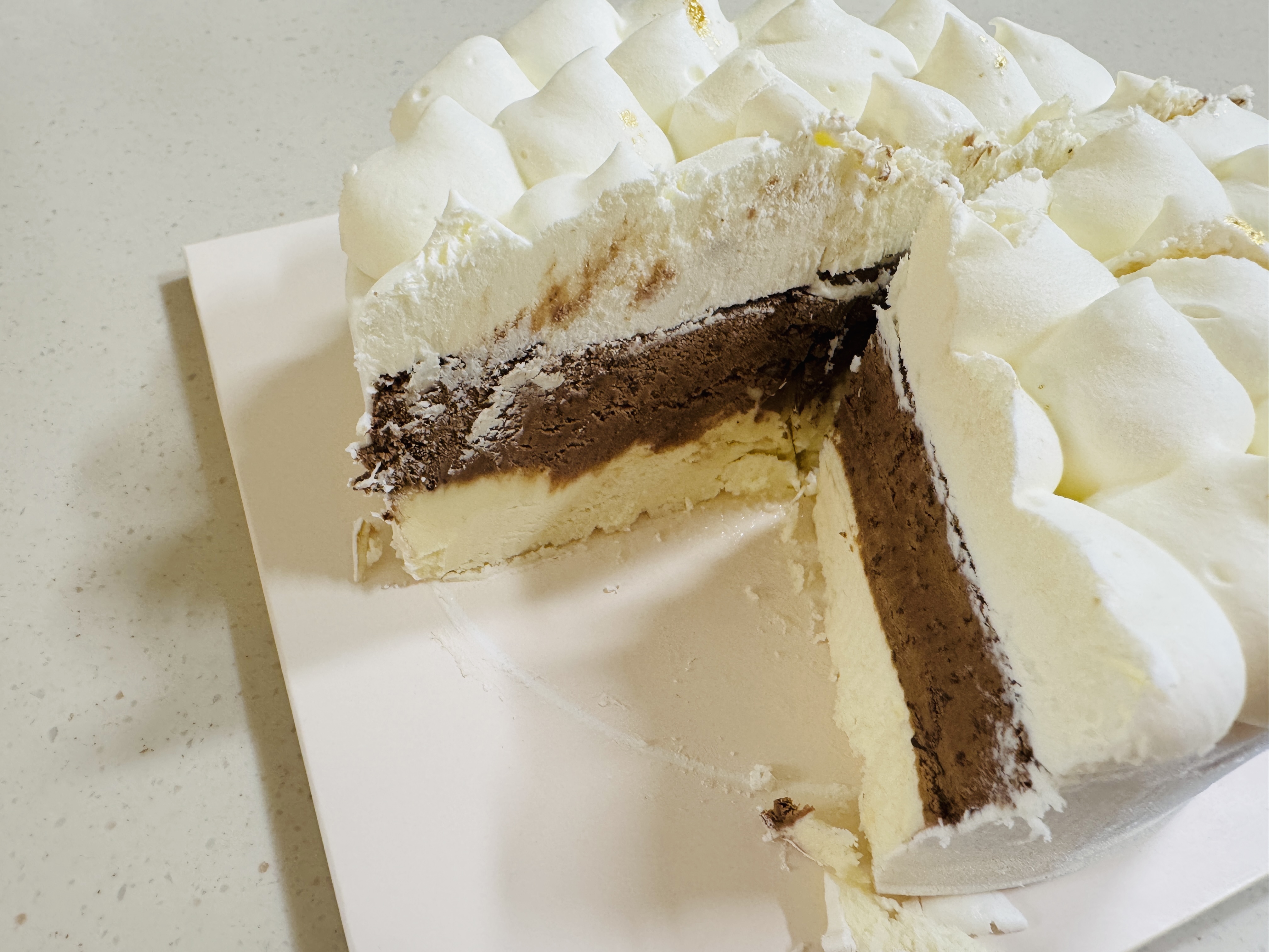 바닐라+벨지안초코 조합 케이크 예요.