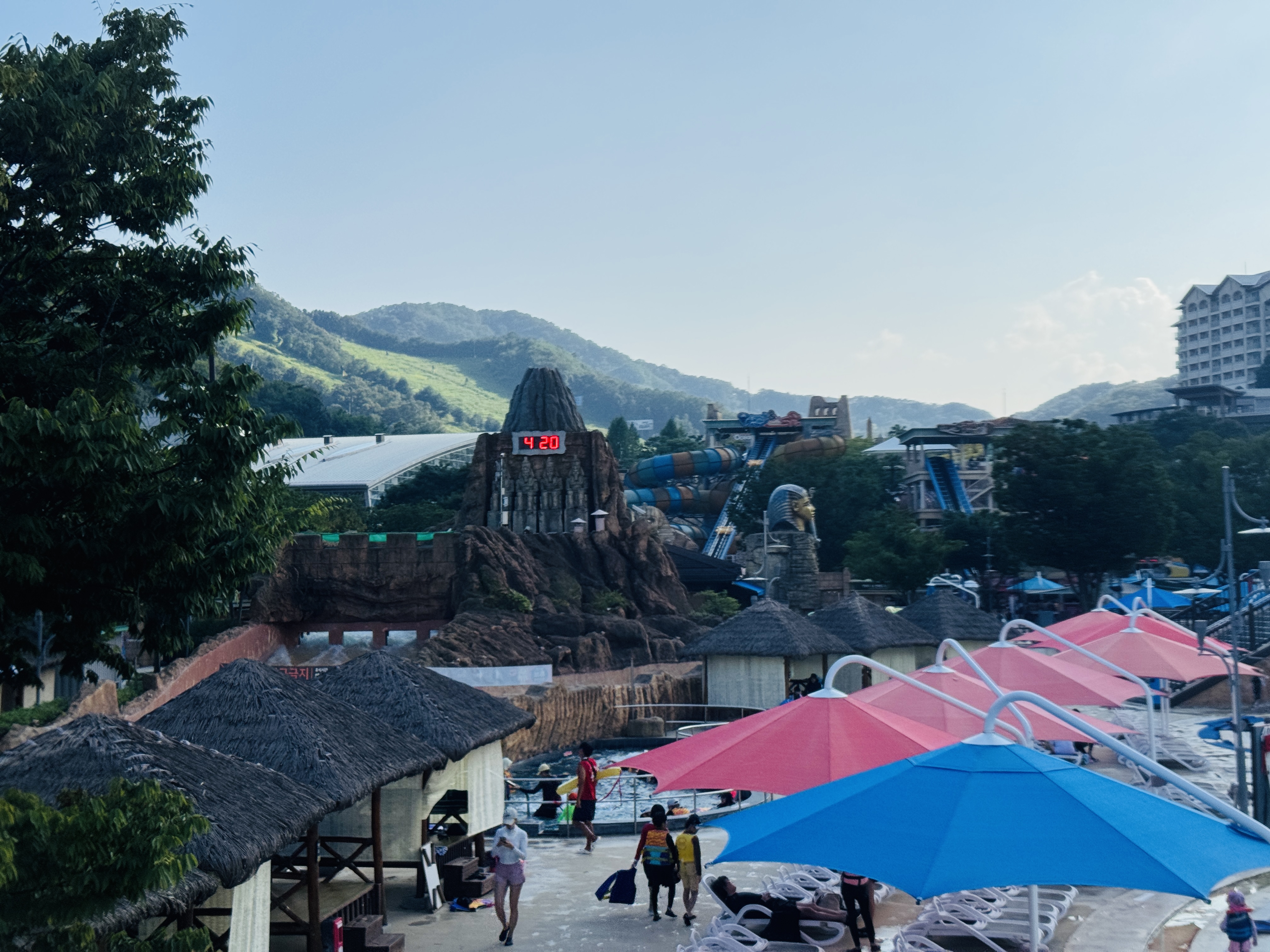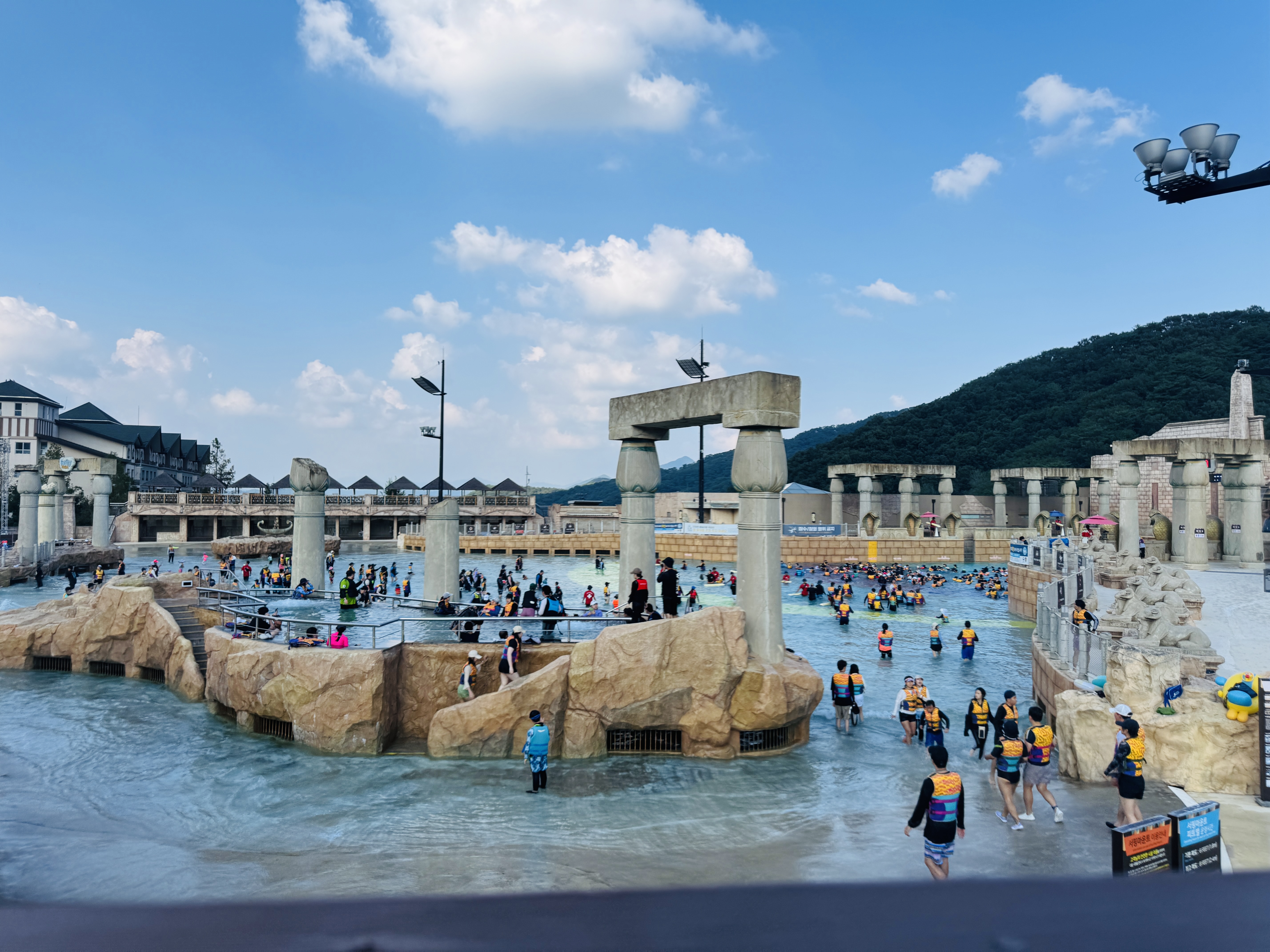 파도풀 바라보며 쉴수 있는 온수풀도 두군데나 있어서 좀 쉬면서 기다리기도 좋았어요.